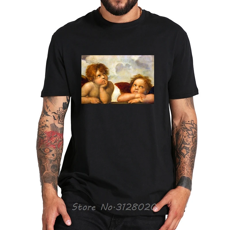 Футболка в стиле Харадзюку для мужчин и женщин, милая белая рубашка с изображением ангелов, Cherubs, рафаэла, Santi, Sistine, Madonna, лето