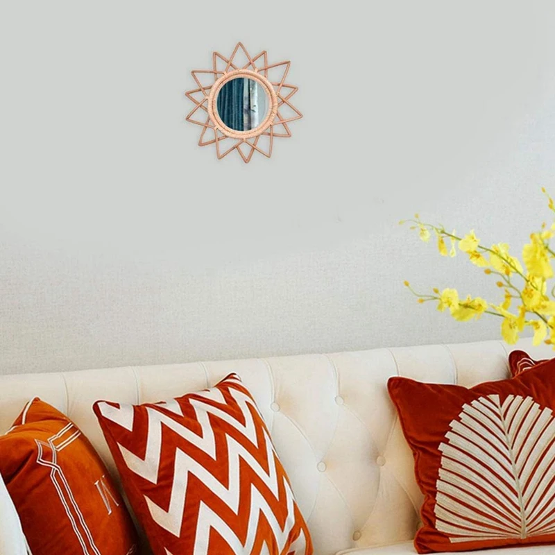 Круглая настенная зеркальная рамка из ротанга, нордическая натуральная лоза, зеркало ручной работы рамка, идеи для гостиной, для гостиной
