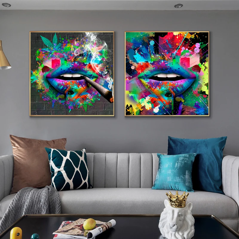 Абстрактный граффити, живопись на холсте, красочные губы, уличная Настенная картина, абстрактные постеры и принты для гостиной, домашний декор