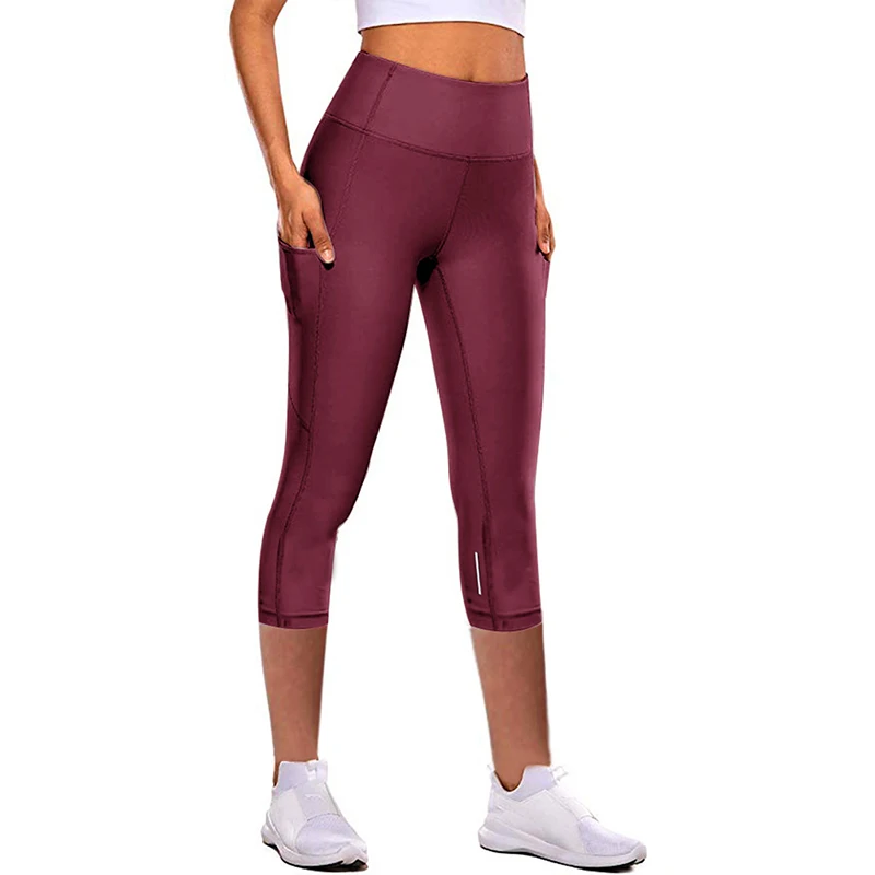 Женские брюки до середины икры для фитнеса и йоги леггинсы с карманами, сексуальные спортивные брюки для спортзала, бедрах, подтяжки, тренировок, однотонные штаны для йоги, хит продаж