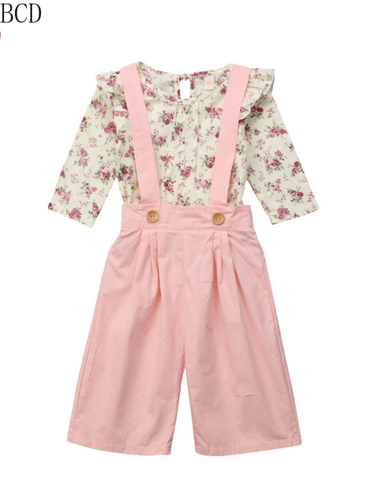4Girls Sets New Spring Summer Floral Children Sleeveless T-shirt+Solid