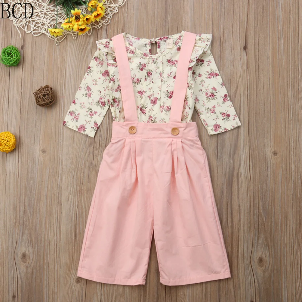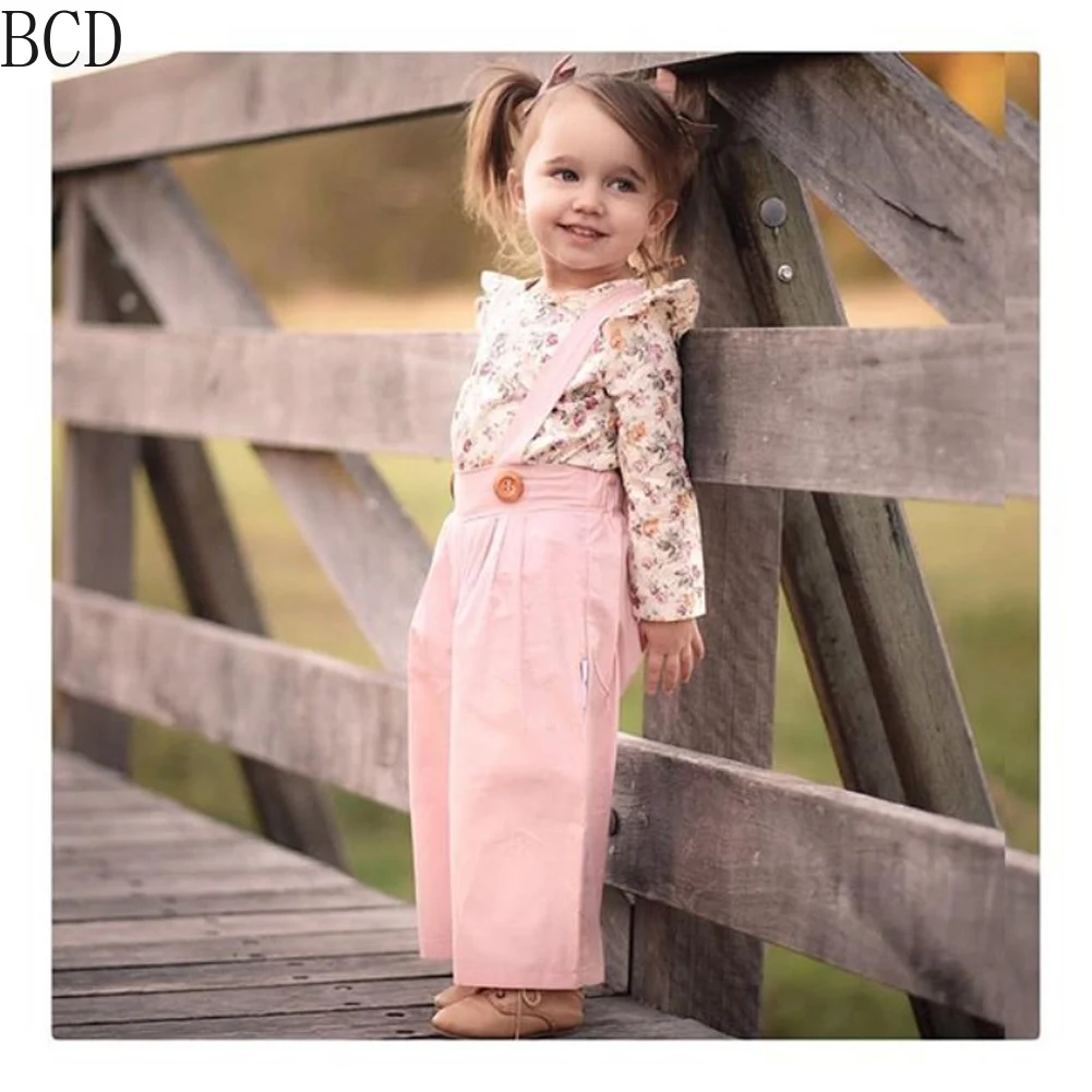 Комплект одежды из 2 предметов для детей для маленьких девочек Зимний Детский комбинезон с цветочным принтом, топ + штаны, милый комплект для девочек, комплект одежды для детей ясельного возраста одежда для девочек 2021 Новый