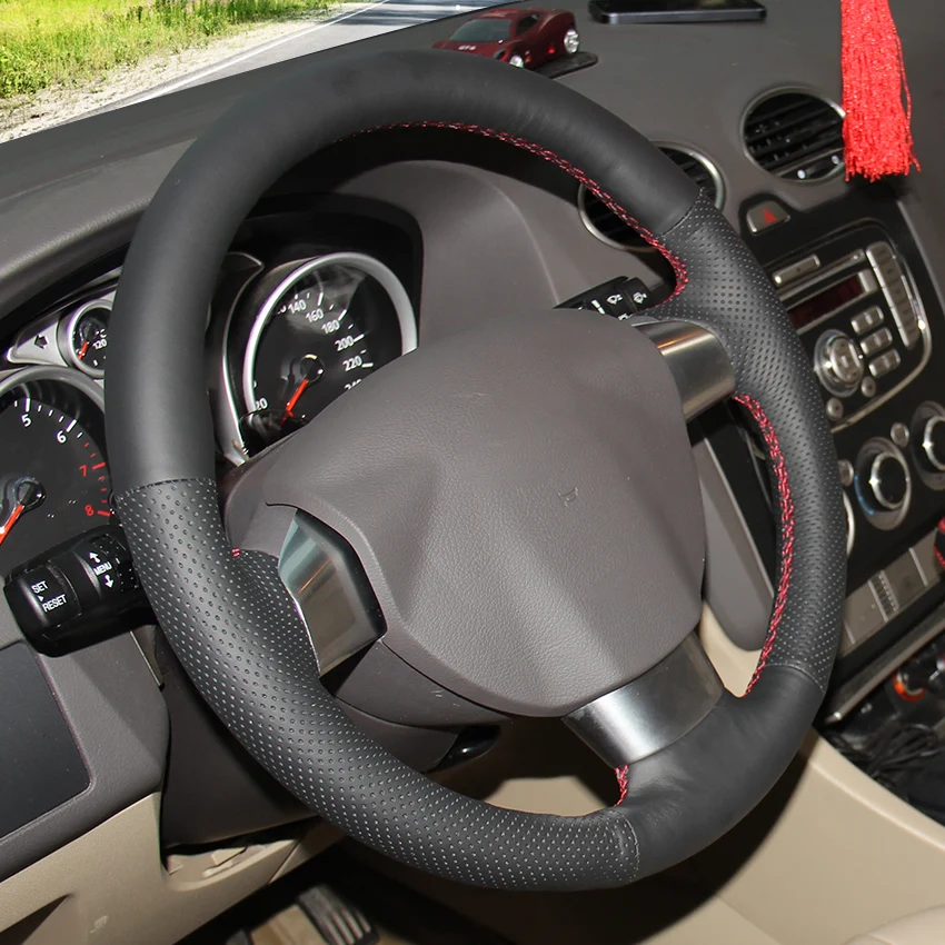 Искусственная кожа Чехол рулевого колеса автомобиля для Ford Focus ST 2005-2010 фокус RS 2005-2011 фокус 3 2005 2006 2007 2008 2009 2010