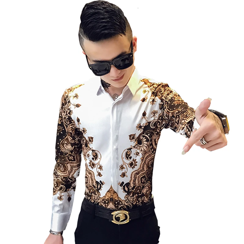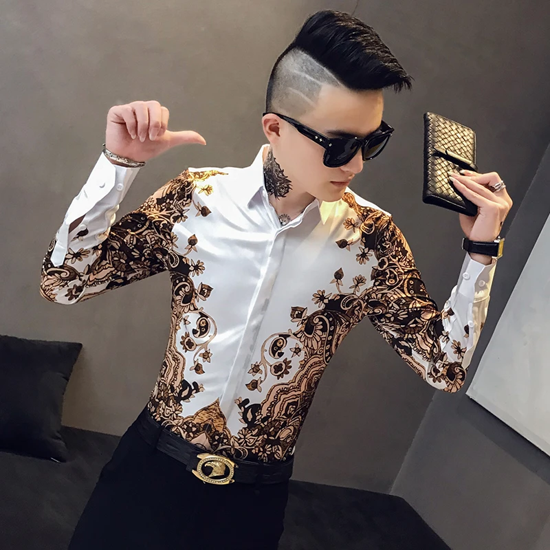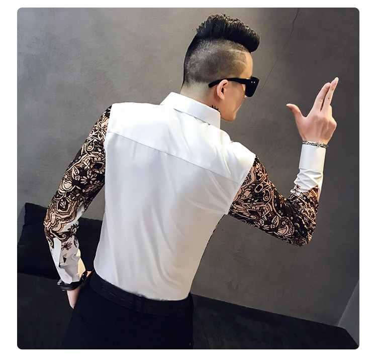 Мужская Уличная цифровая печать тонкая подходит вечерние смокинг рубашки для мужчин Повседневная рубашка на осень рубашка с длинными рукавами, Мужская одежда, рубашки