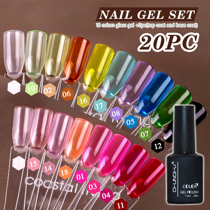 Новый набор для ногтей 20 шт. Светодиодный УФ-гель для ногтей верхнее Базовое покрытие популярный глазурный стеклянный лак Янтарный гель лак для ногтей дизайн своими руками