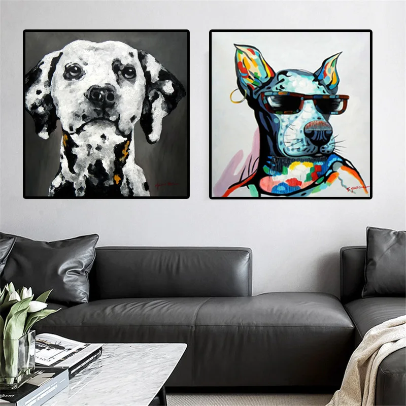Картины на холсте с изображением животных, граффити, собаки, коровы...