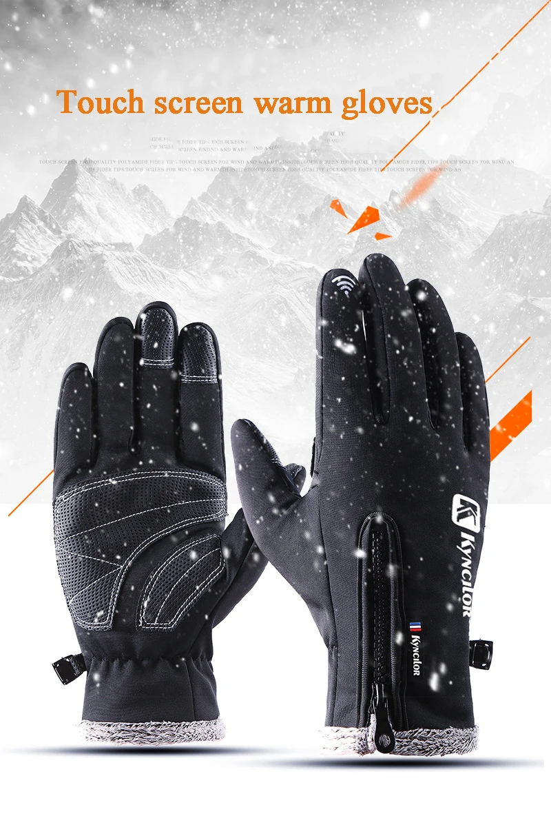Перчатки мужские, женские, зимние, водонепроницаемые, на молнии, спортивные, для бега, рыбалки, теплые, Нескользящие, для сенсорного экрана, 1 пара