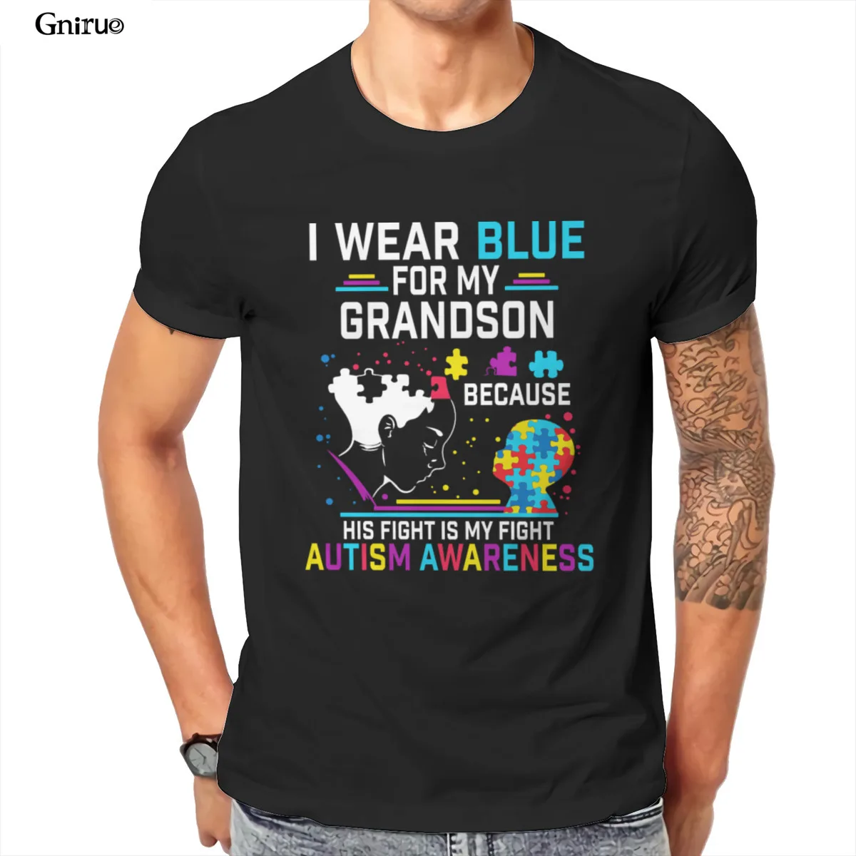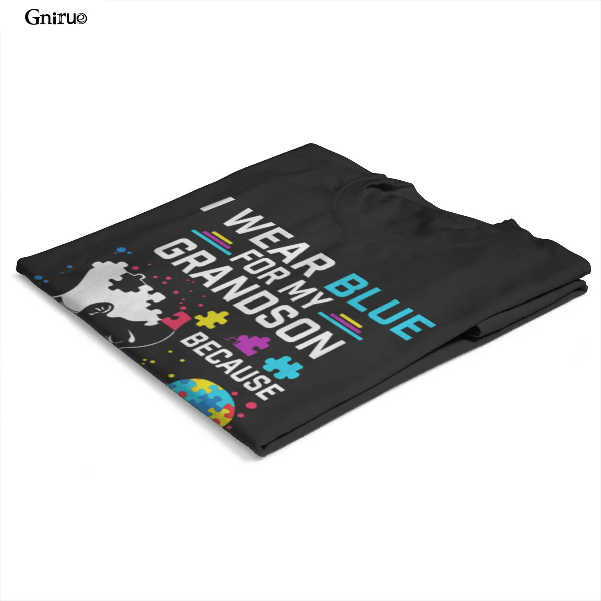 Оптовая продажа, я ношу синий для моего внука, осведомленность об аутизме, унисекс хлопковая футболка, черный, красный Грут, кавайная винтажная мужская одежда 93502