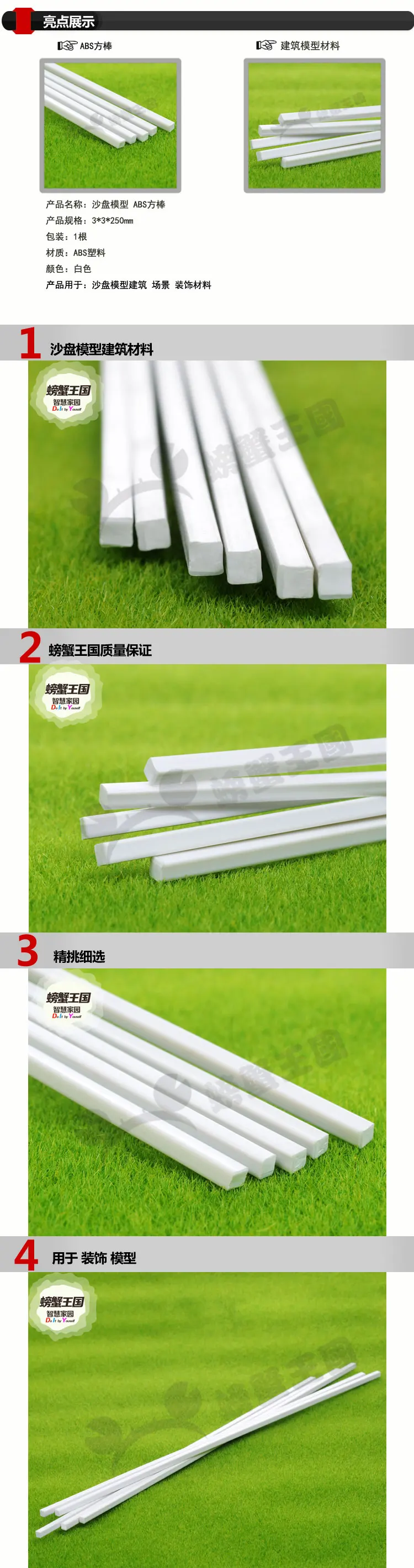 100 шт.лот белый квадратный стержень из АБС-пластика для архитектур...