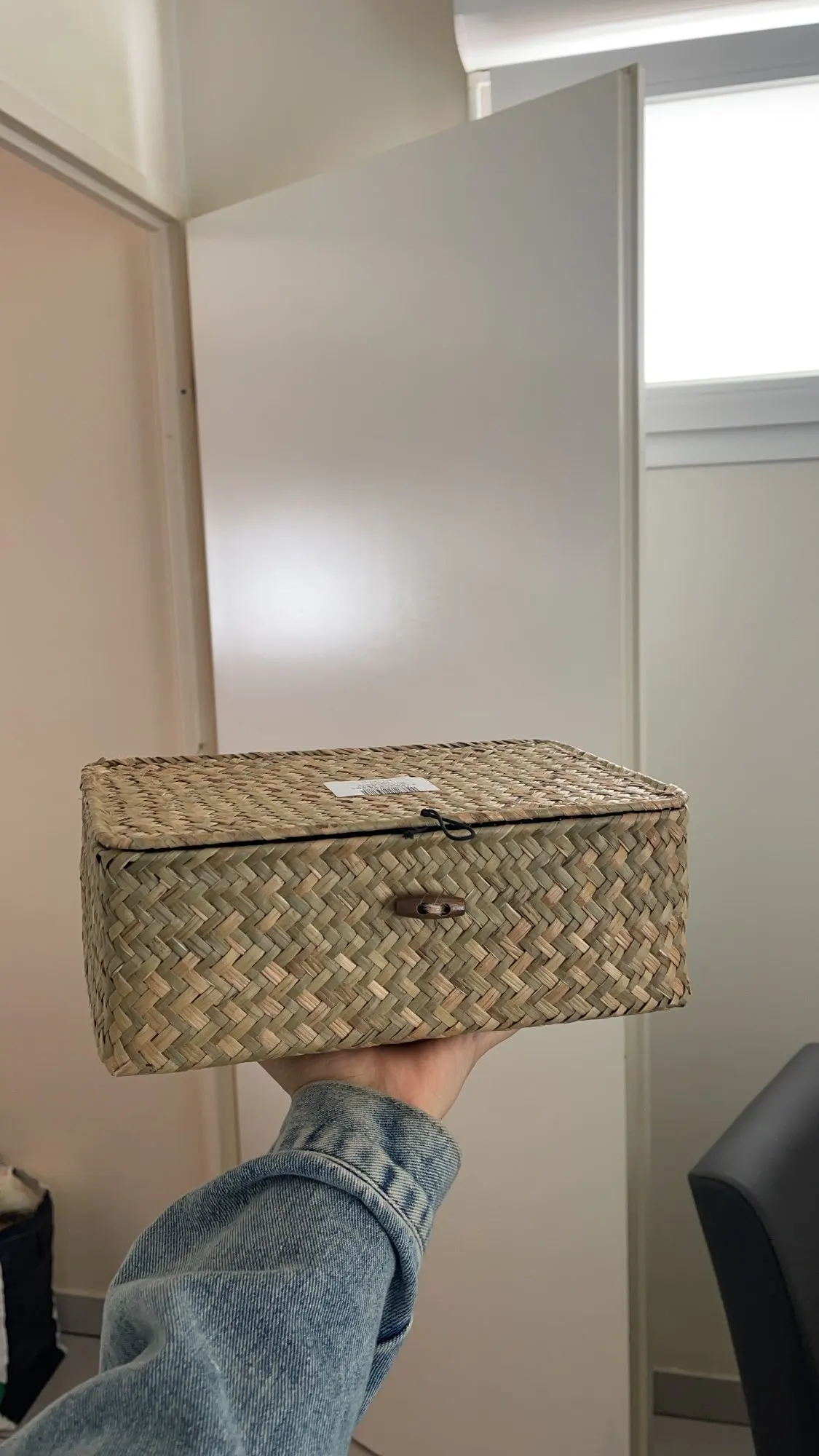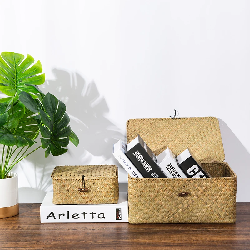 Плетеный органайзер для хранения водорослей ручной работы с крышкой, большой контейнер для хранения пищевой косметики 32 см, контейнер для мелочей, домашний декор