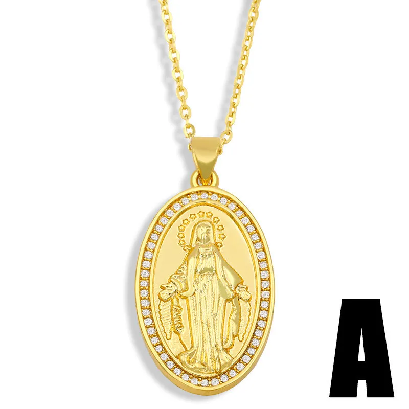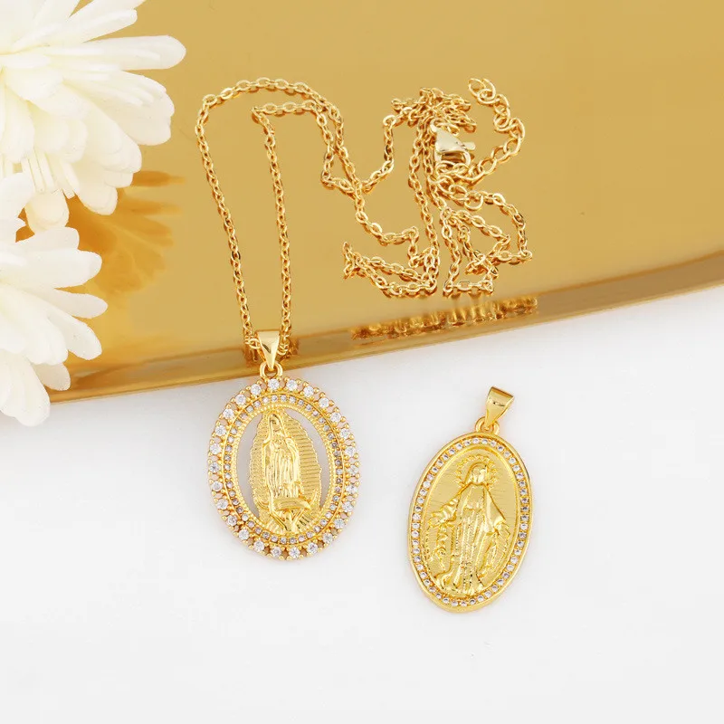 2021 Новое модное медное ожерелье с кулоном Девы Марии из фианита для женщин, медальон с гуадалупом, женское колье