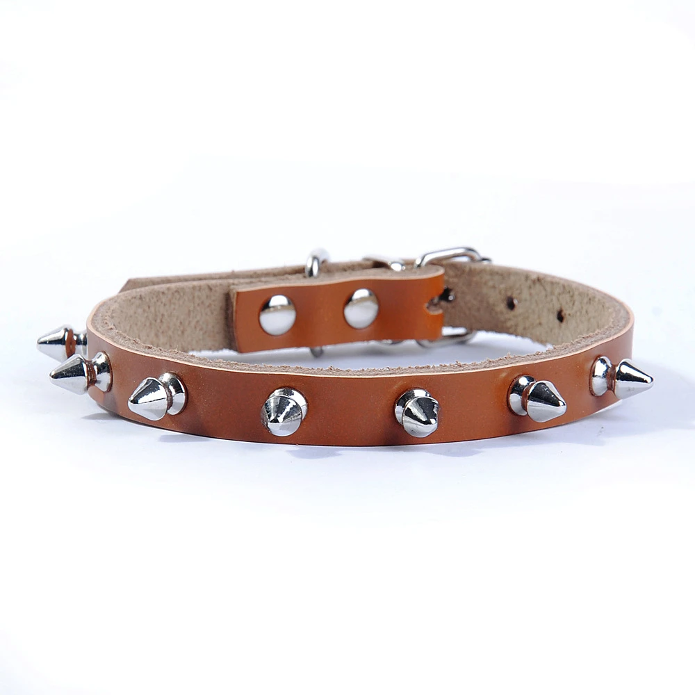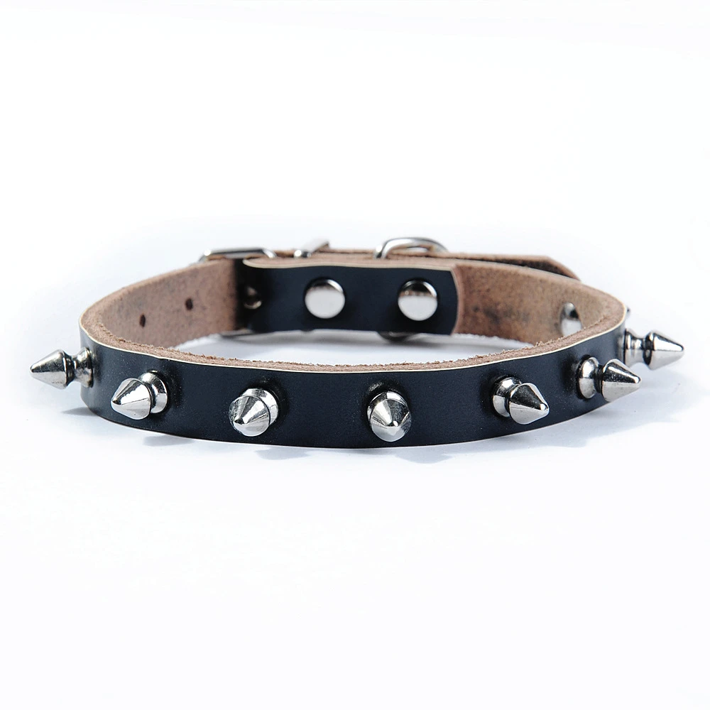 Шипами подбитый маленький собачий ошейник большого размера с заклеп...