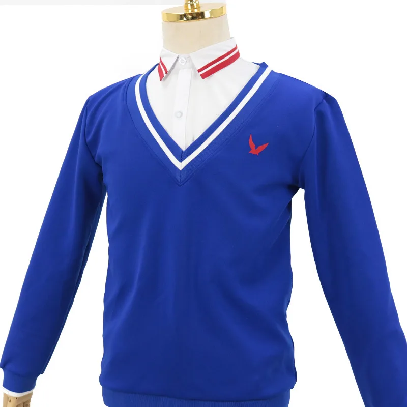 Момое Sawaki Косплэй костюм красный парик аниме чудо яйцо приоритет короткий синий свитер рубашки с коротким рукавом Вечерние ролевые игры снаряжение Для мужчин