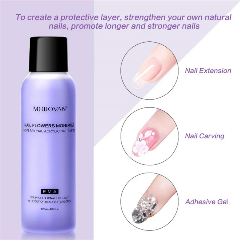 Акриловый гель для ногтей MOROVAN, 40120 мл, акриловый жидкий лак для наращивания ногтей, прозрачная пудра для быстрого наращивания, с кисточкой для салона ногтей