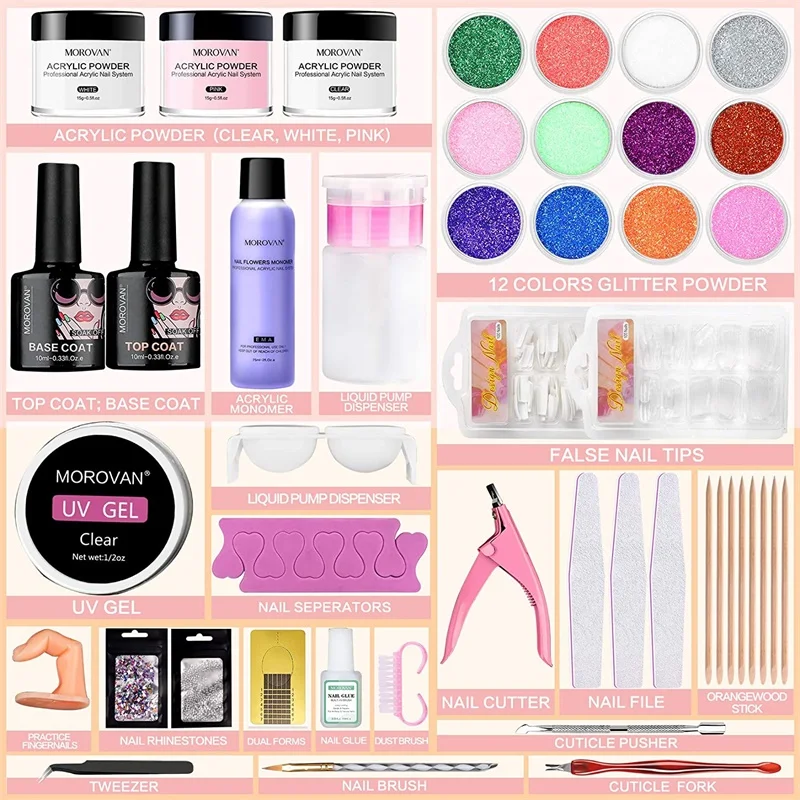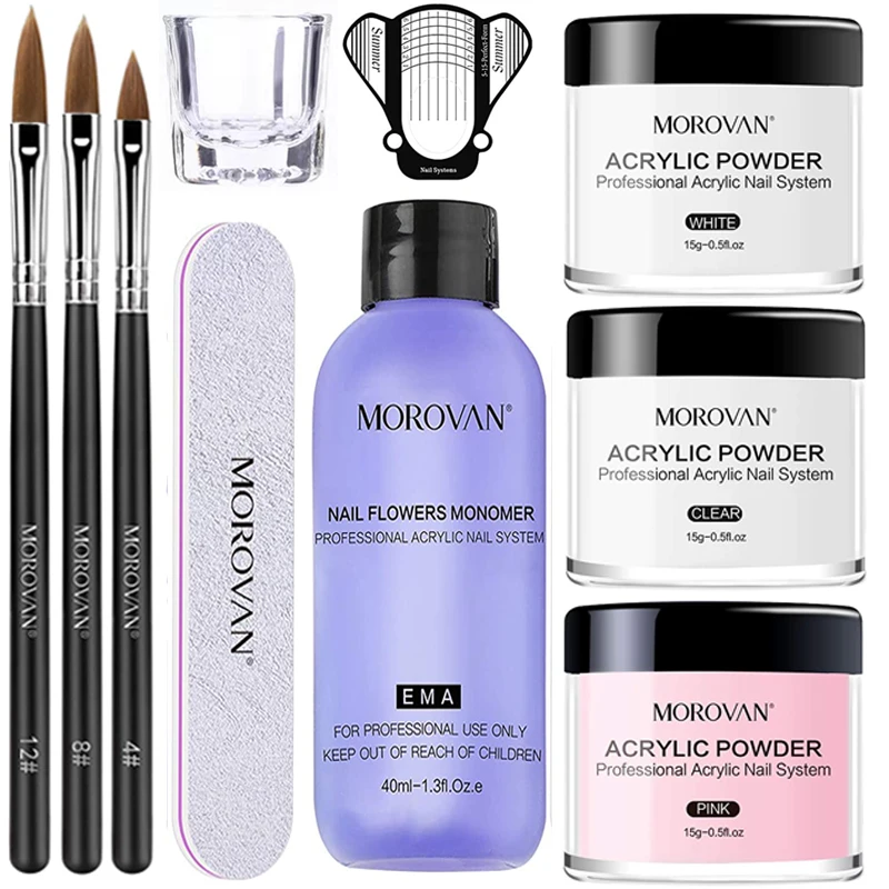 MOROVAN акриловый Фрезер для ногтей cо шлифовальными гель 40/120 мл Акриловая жидкая лак для ногтей для наращивания ногтей чистые порошки Быстрый Строитель с Кисть для ногтей