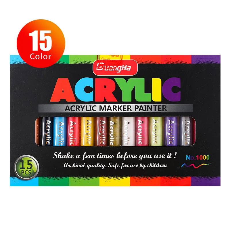 Название продукта: акриловый маркер для краскиЦвет:4 цвета набор 8 цветов Набор 12 цветов набор, 15 цветов набор, 2 4 цвета набор. 36 цветов в комплектеТип товара: DIY маркерная ручка, креативный маркер, художественный маркер и маркер для краскиДлина ручки: 5,63 дюйма (14,3 см длина)Материал ручки: пластик Безопасный и здоровый для человеческого тела и окружающей среды.Наконечник ручки: наконечник из нейлонового волокнаХарактеристики:• Размер наконечника: 3 мм• Упаковка: цветная бумажная коробка