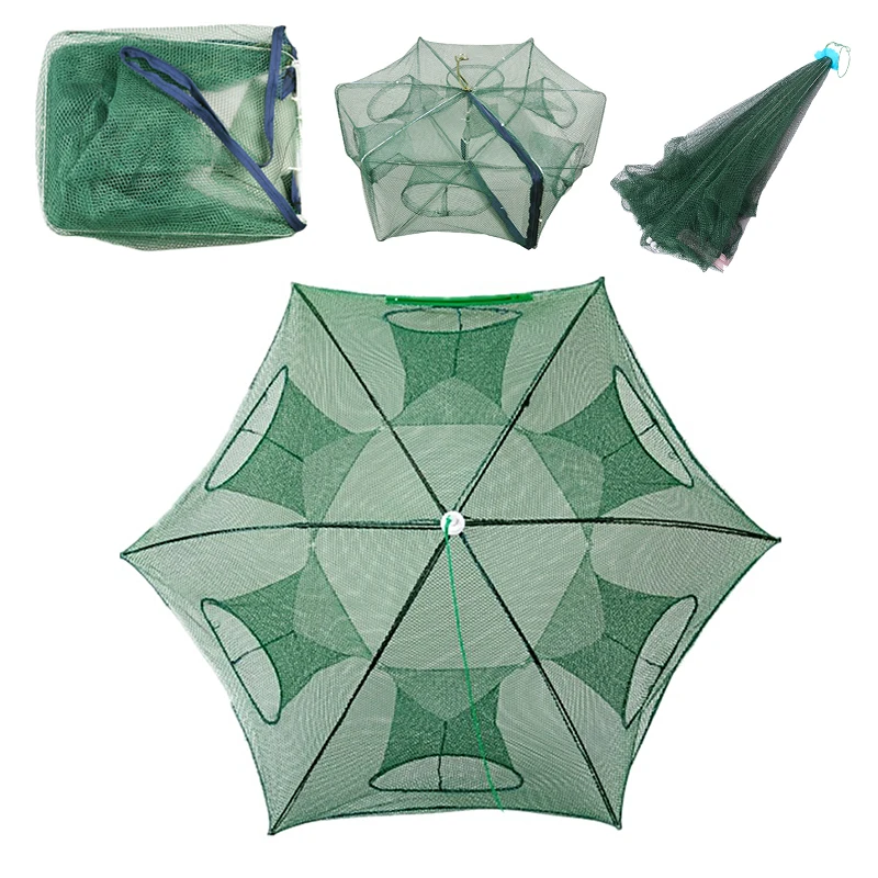 Ловушка для рыболовной сети с шестью вставками отлично подходит для ловли корюшек, угрей, крабов, омаров, Минноу, креветок и раков.