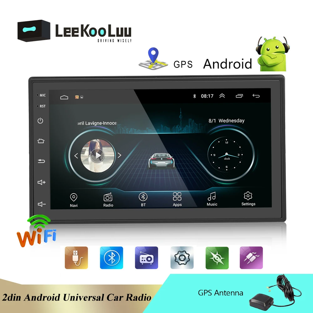 Автомагнитола Leekooluu, 2 Din, 7 дюймов, Gps, Wi-Fi, Bluetooth