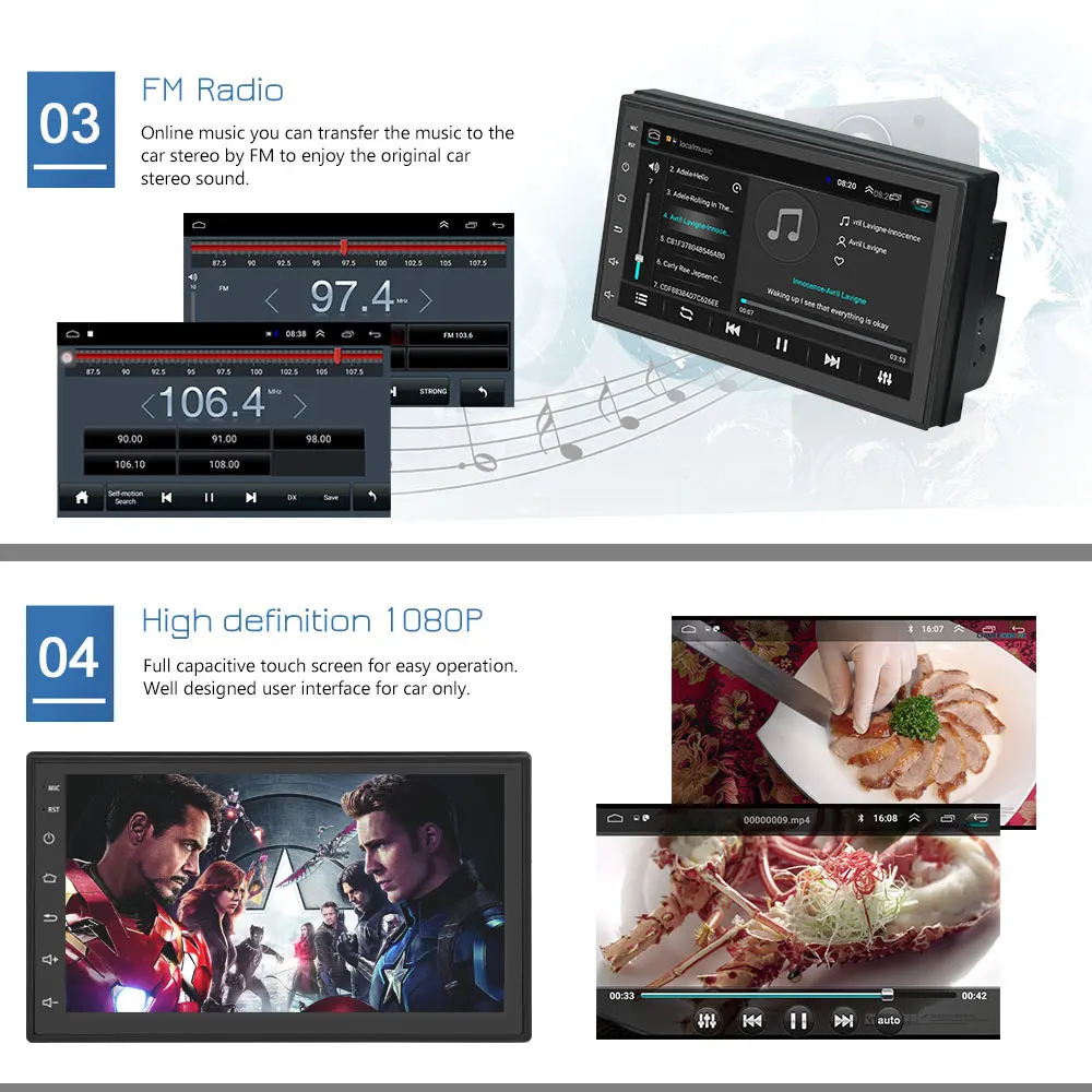 FM/AM радио: онлайн-музыка, вы можете передать музыку на автомобильную стереосистему через FM, чтобы наслаждаться оригинальным автомобильным стереозвуком