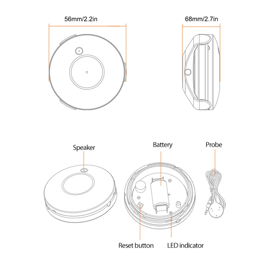 Посылка1 датчик переполнения воды (батарея в комплект не входит)1 датчик обнаружения.1 набор крепежных винтов.1 Руководство пользователя (на английском языке)