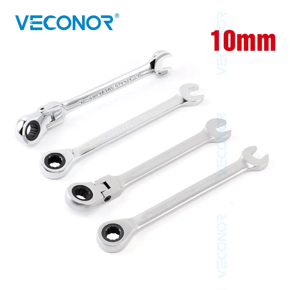 VECONOR10 мм Трещоточный ключ 72T трещотка головное зеркало/тусклый полированный одиночный ключ инструмент открытый конец комбинированный гаечный ключ для ремонта