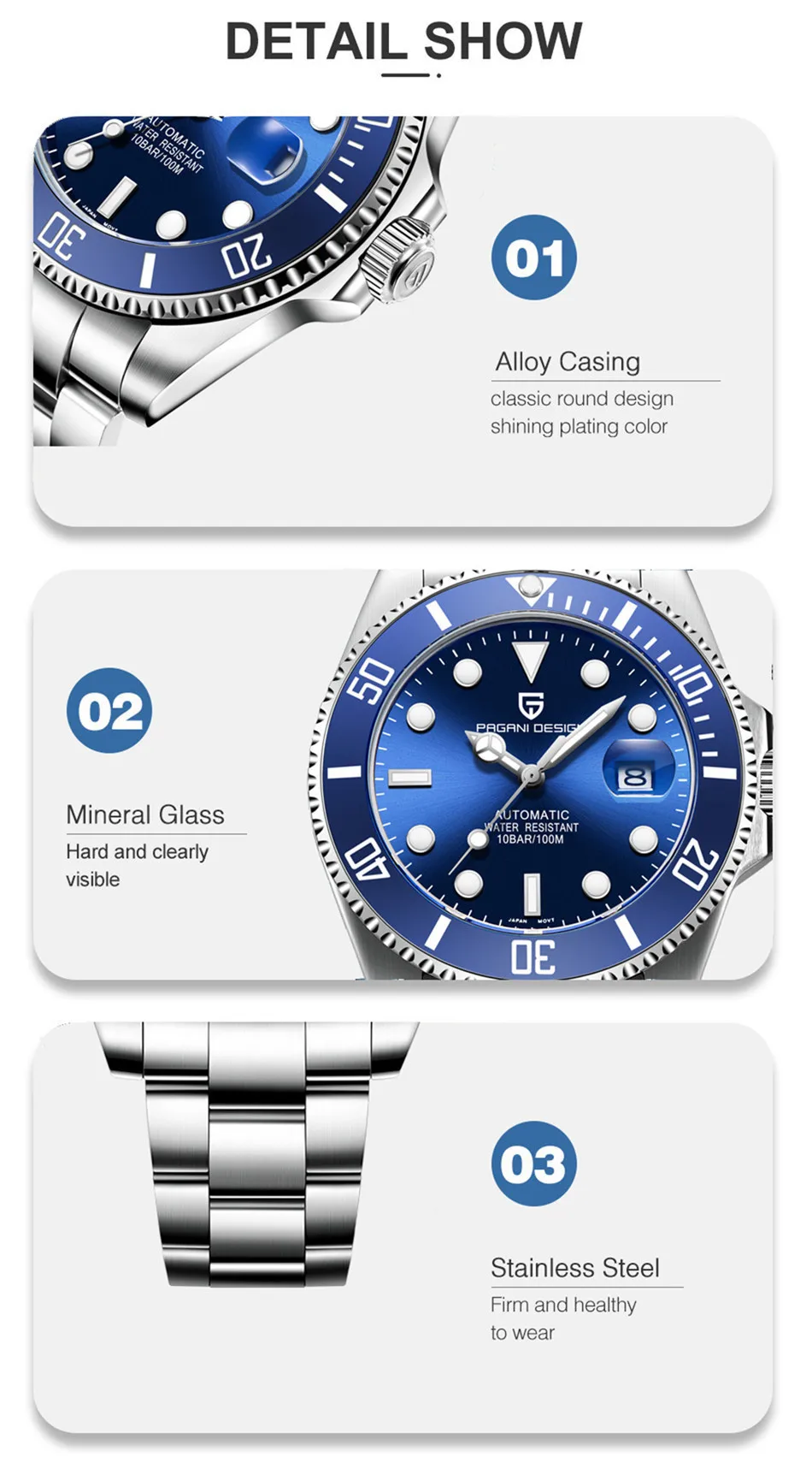 Часы PAGANI Мужские механические, дизайнерские водонепроницаемые ав...