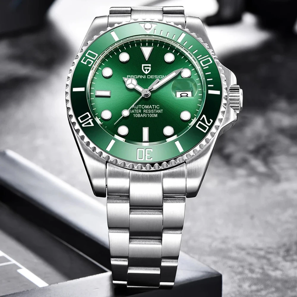 Часы наручные PAGANI Мужские механические, брендовые зеленые автома...