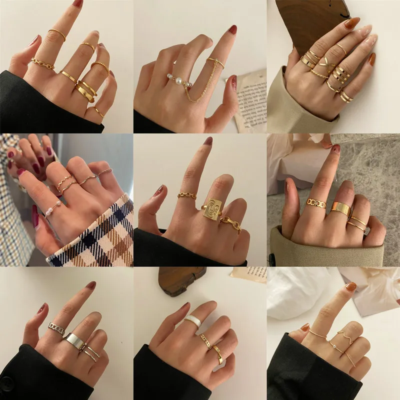Набор колец в стиле хип-хопРок женских ювелирных изделий из металла...