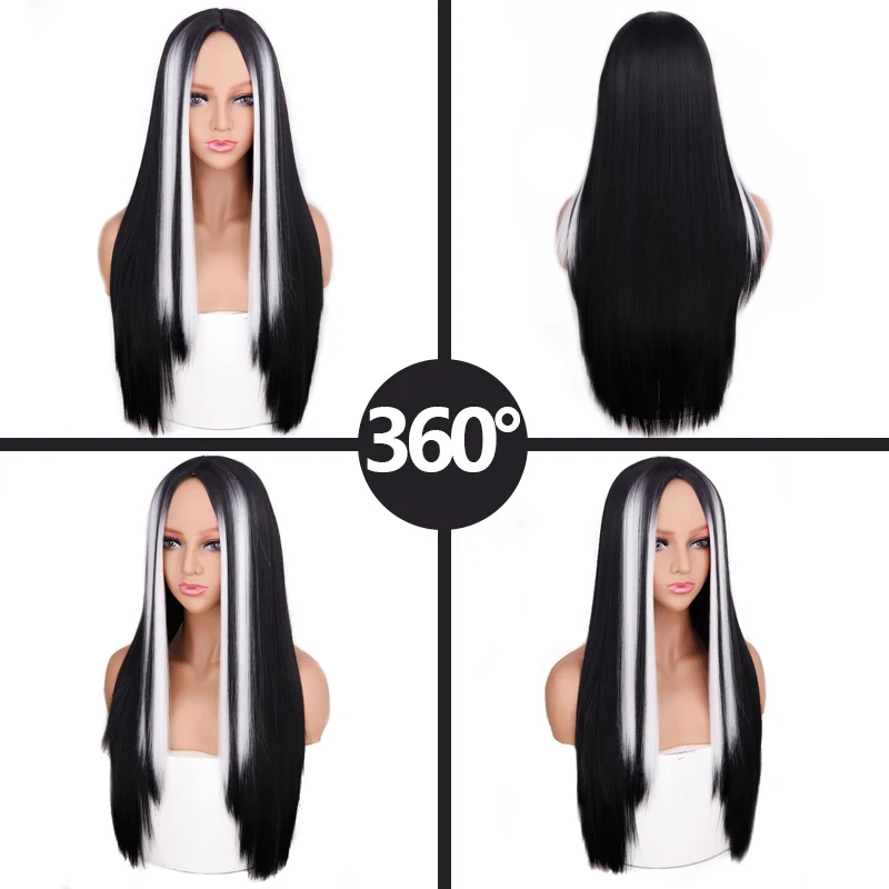 LINGHANG, черно-белый длинный прямой парик, синтетические парики для женщин, косплей, центральная часть, волосы, Термостойкое волокно, повседневный парик