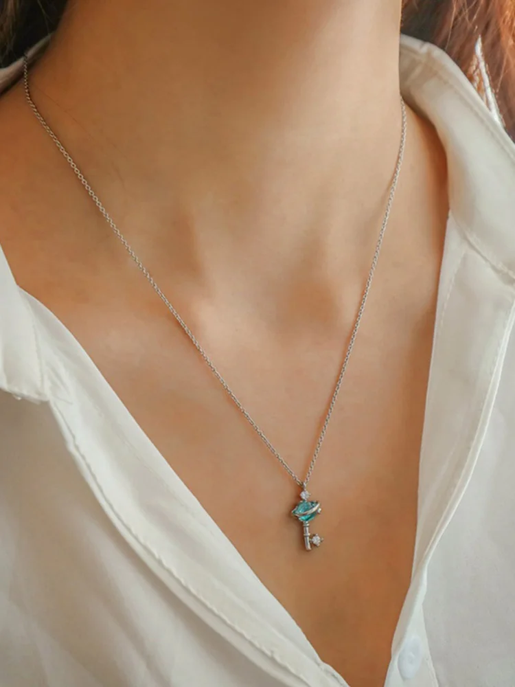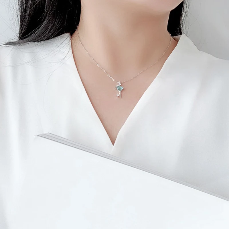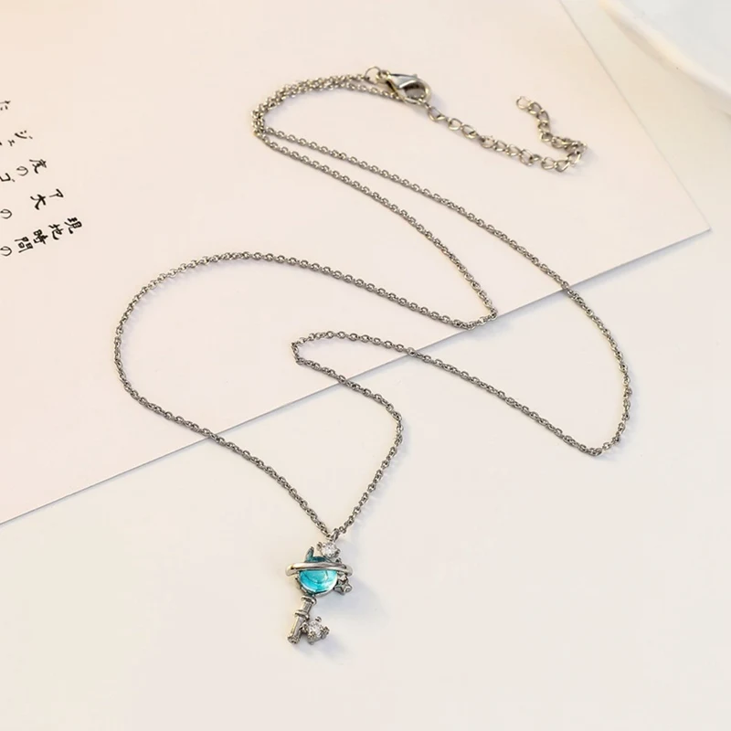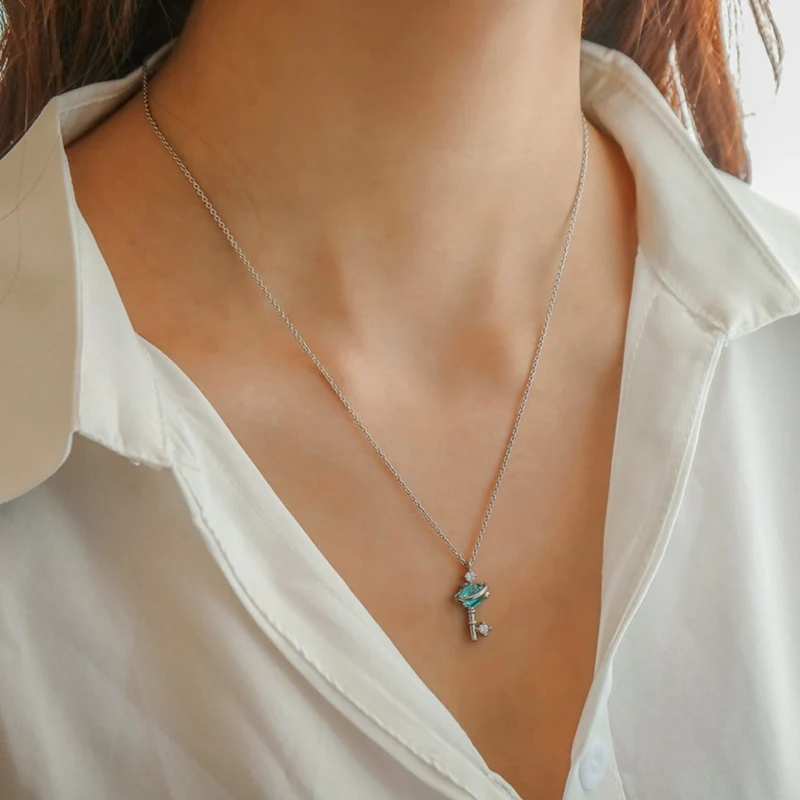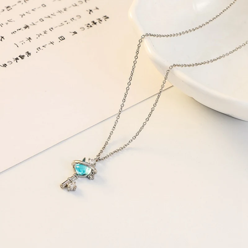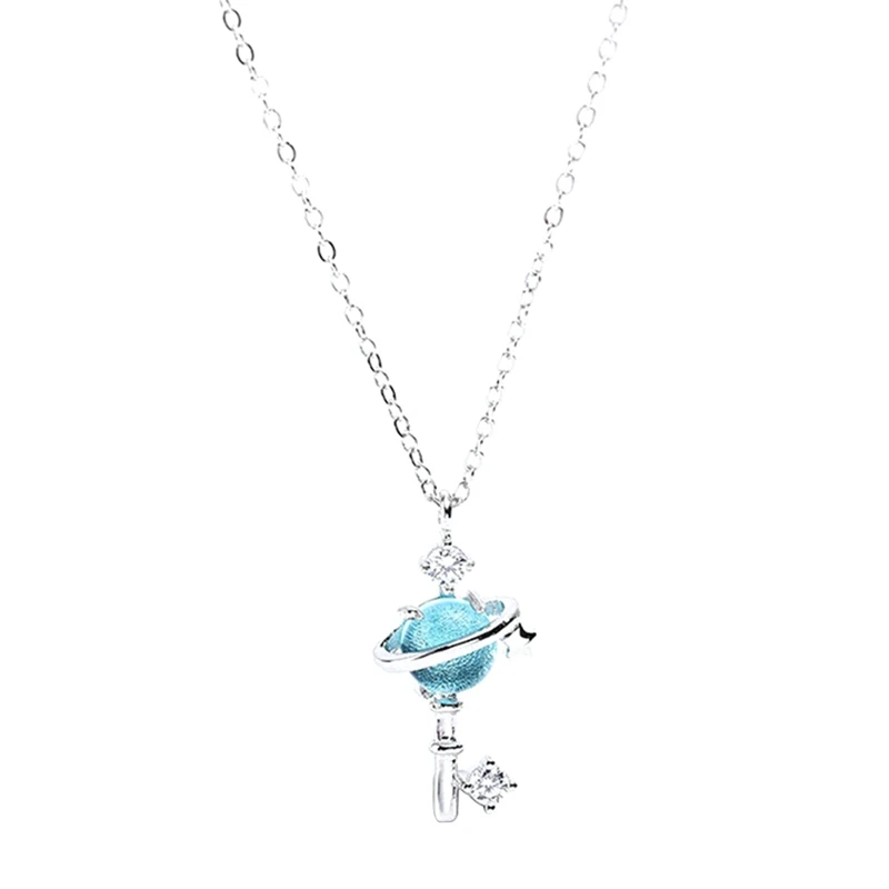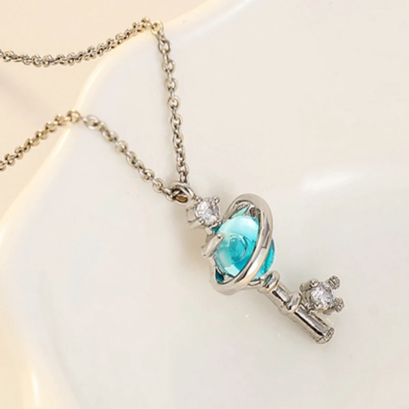 Красивое небольшое ожерелье с кулоном из свежего синего кристалла, Женская индивидуальная цепочка до ключиц, креативное ожерелье с планетами и ключами