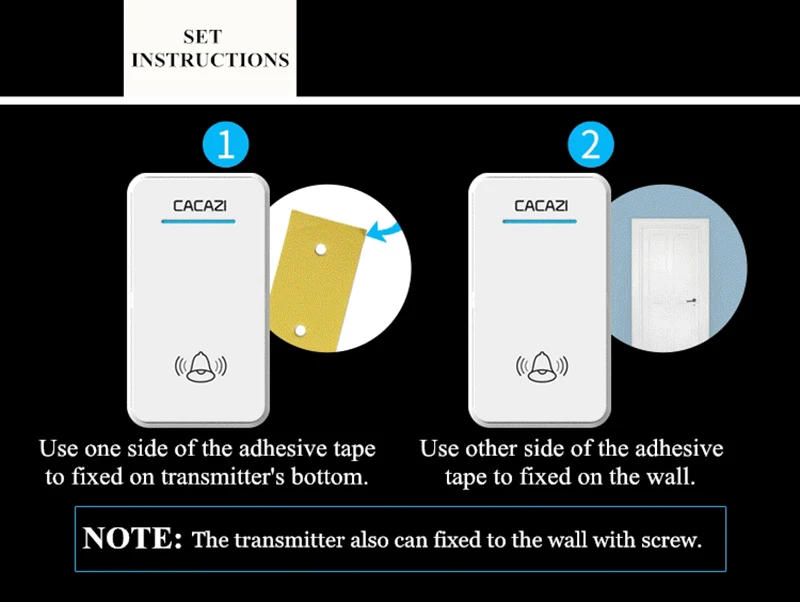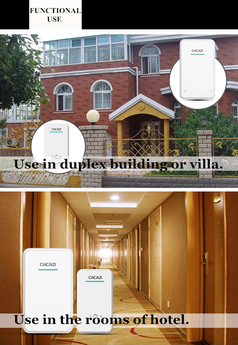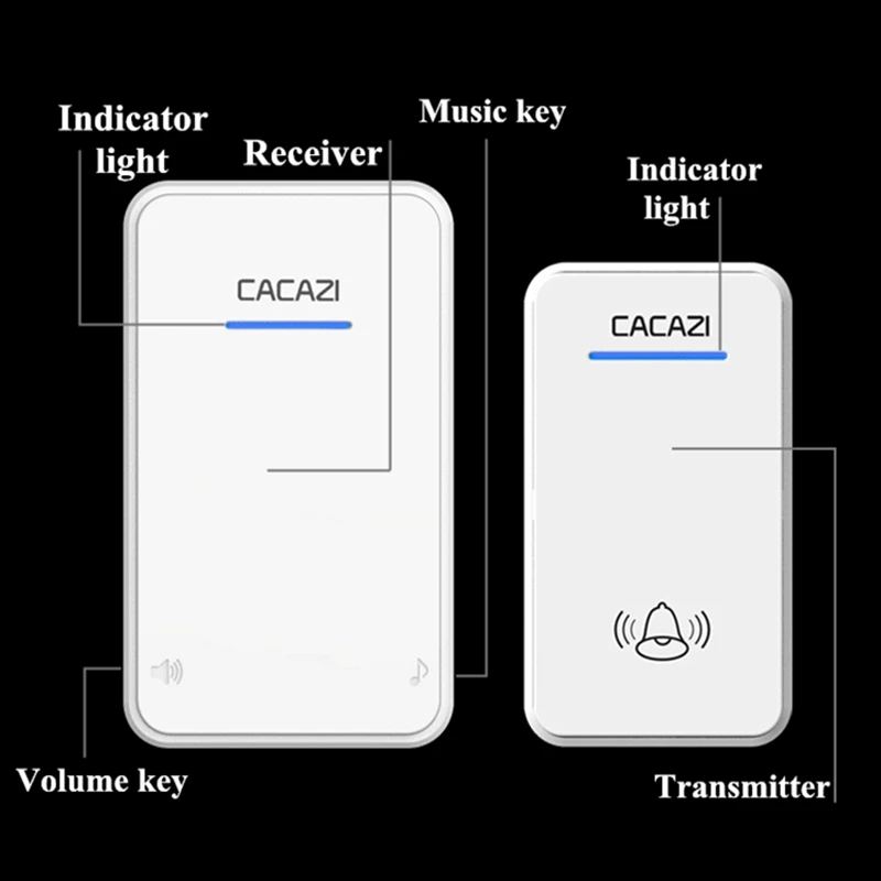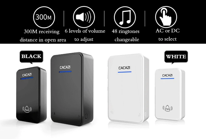 Беспроводной дверной звонок CACAZI DC с батарейным питанием 300 м Д...