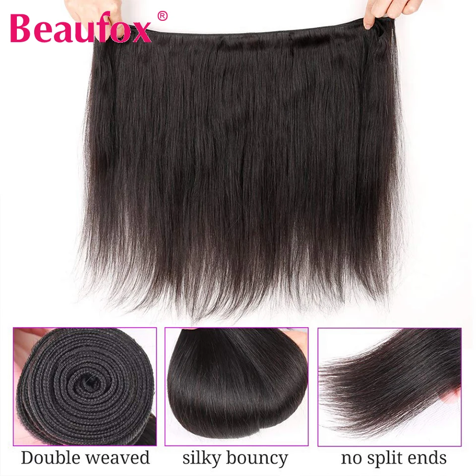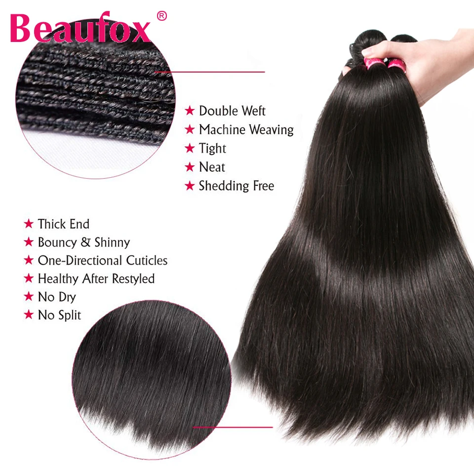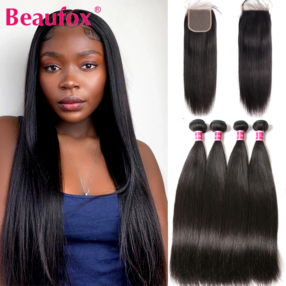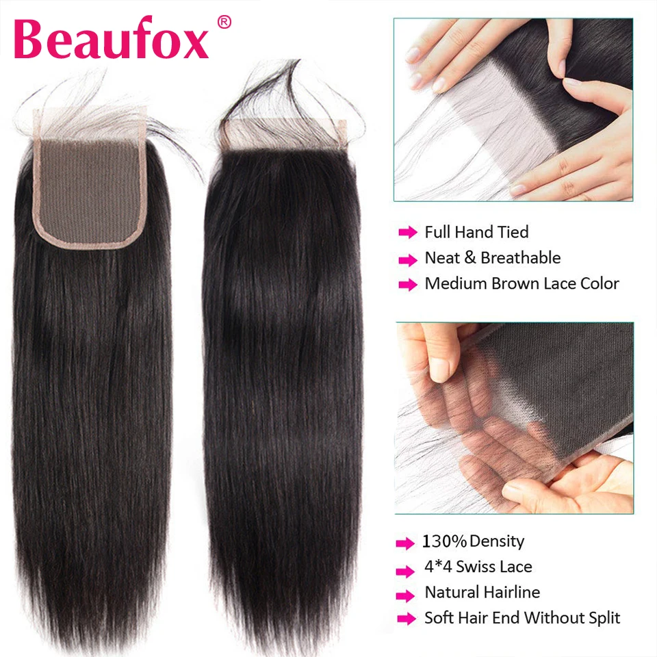 Beaufox прямые волосы пряди с закрытием натуральные кудрявые пучки волос пряди с закрытием малазийские пряди для наращивания волос с закрытием кружева
