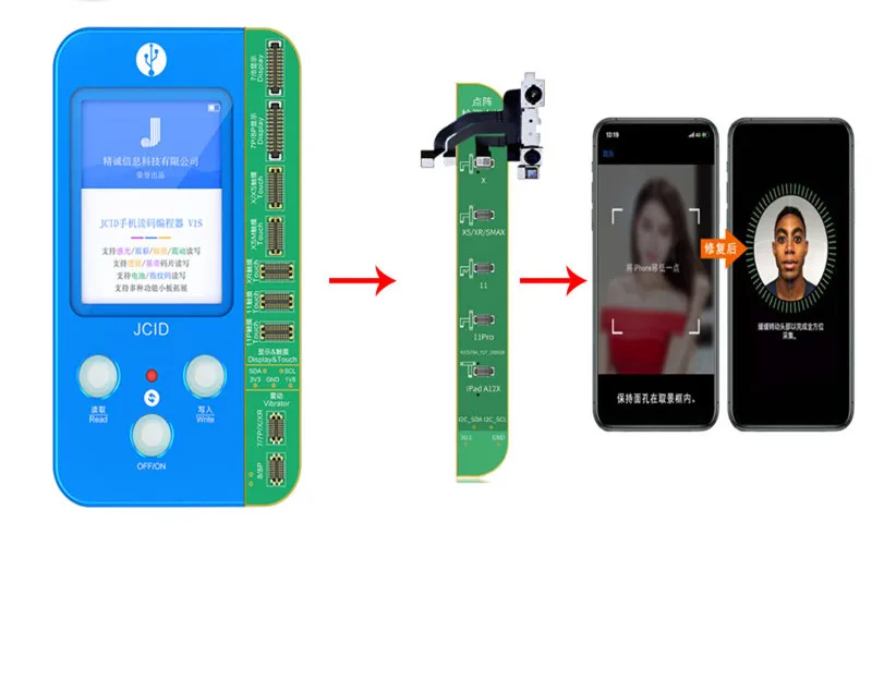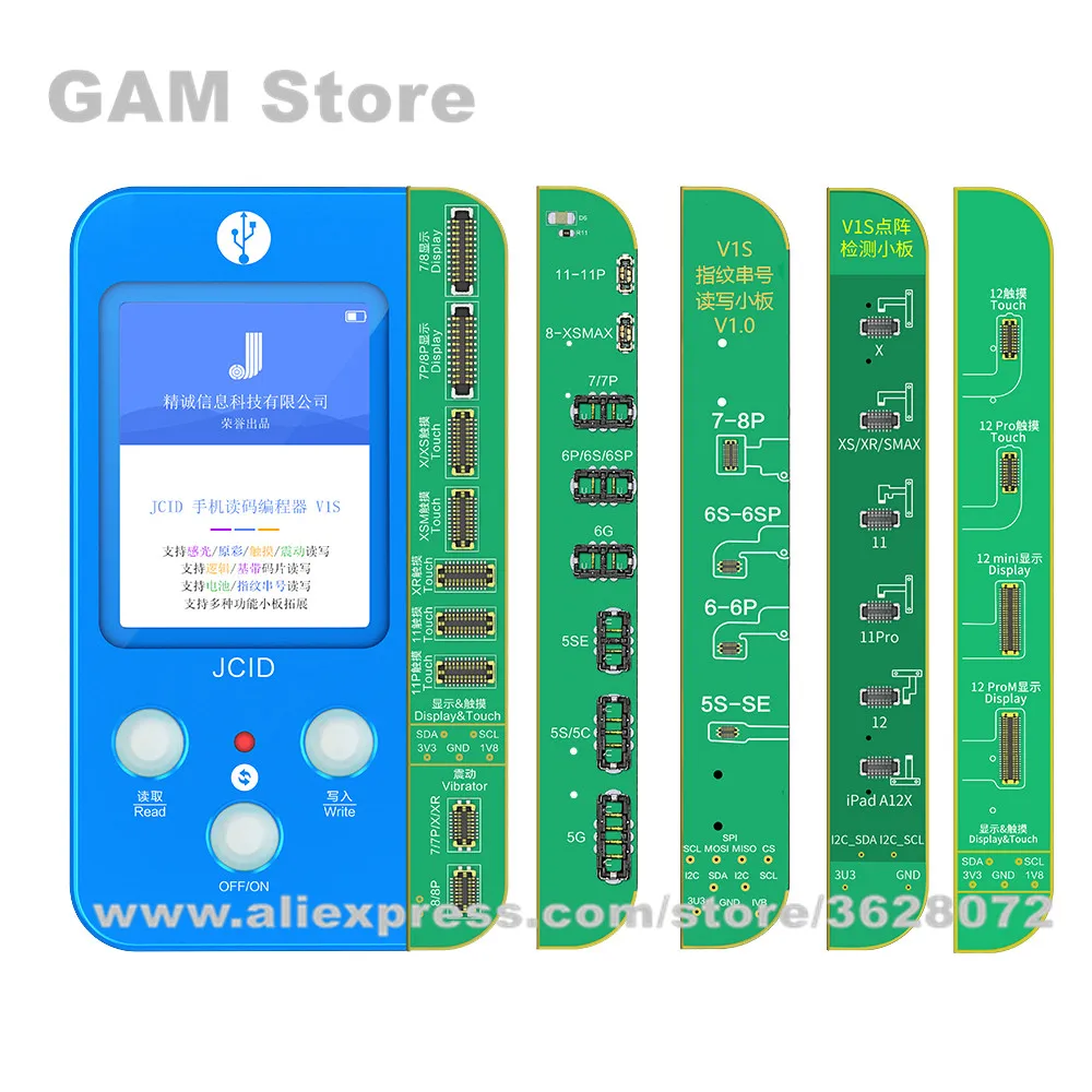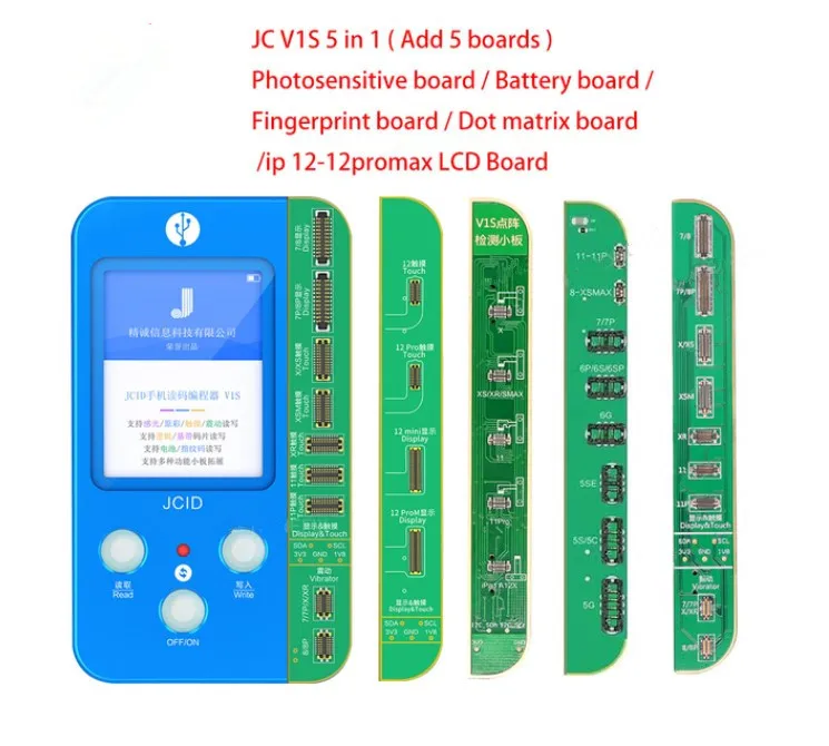 Функция:JC V1S программист могут быть использованы для решения вопроса приближения светильник Сенсор, размер тон Дисплей, ультратонкий, Мультитач, вибратор совместимые вопросы запасных частей с ios 11 обновления. Сравнение с ранее генерируемым, baseband и логическим чипом, функция чтения/записи/редактирования была встроена, JC V1-самый мощный чип EEPROM repair programmer!