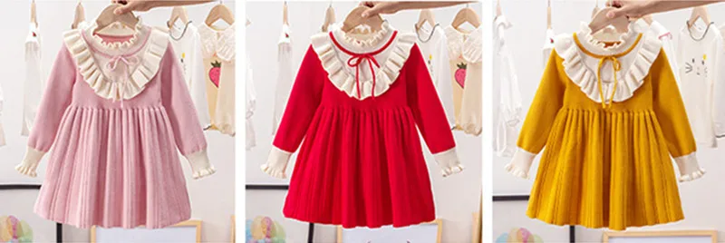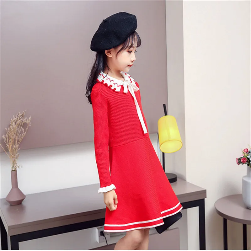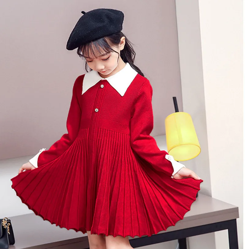 Осенне-зимнее платье для девочек; От 3 до 12 лет для девочек; Праздничный свитер принцессы; Вязаное платье; Рождественский костюм; Одежда для маленьких девочек