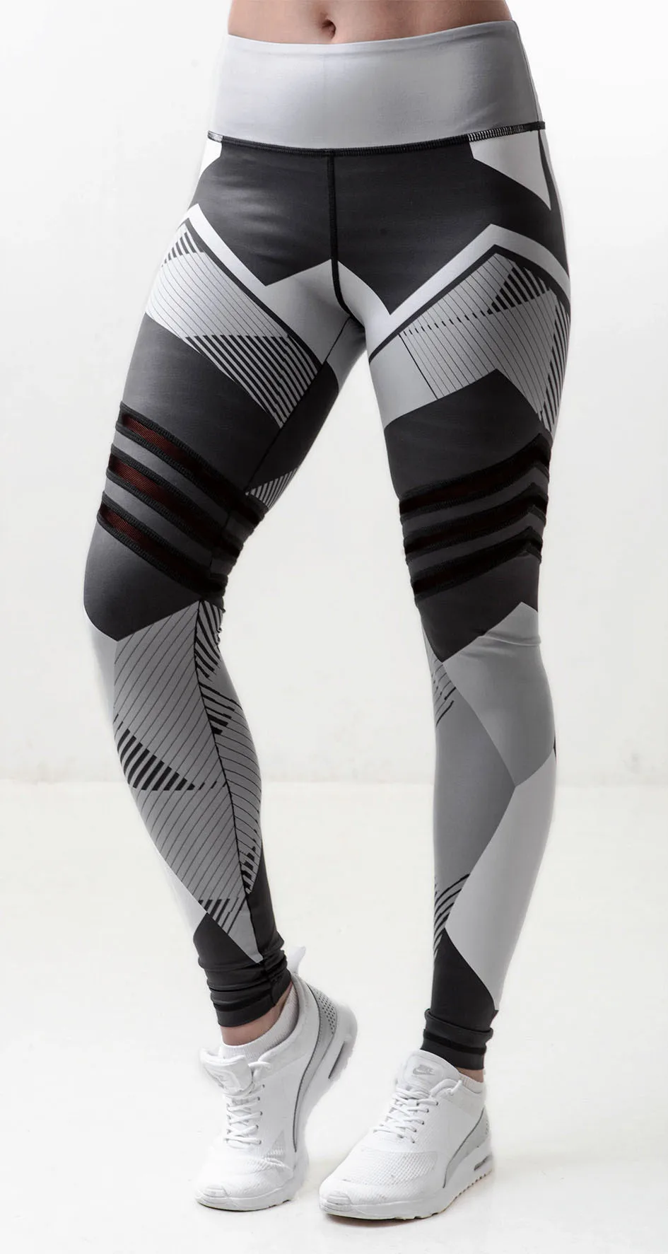 Печать размера плюс с высокой талией серый yoga леггинсы с рисунком...