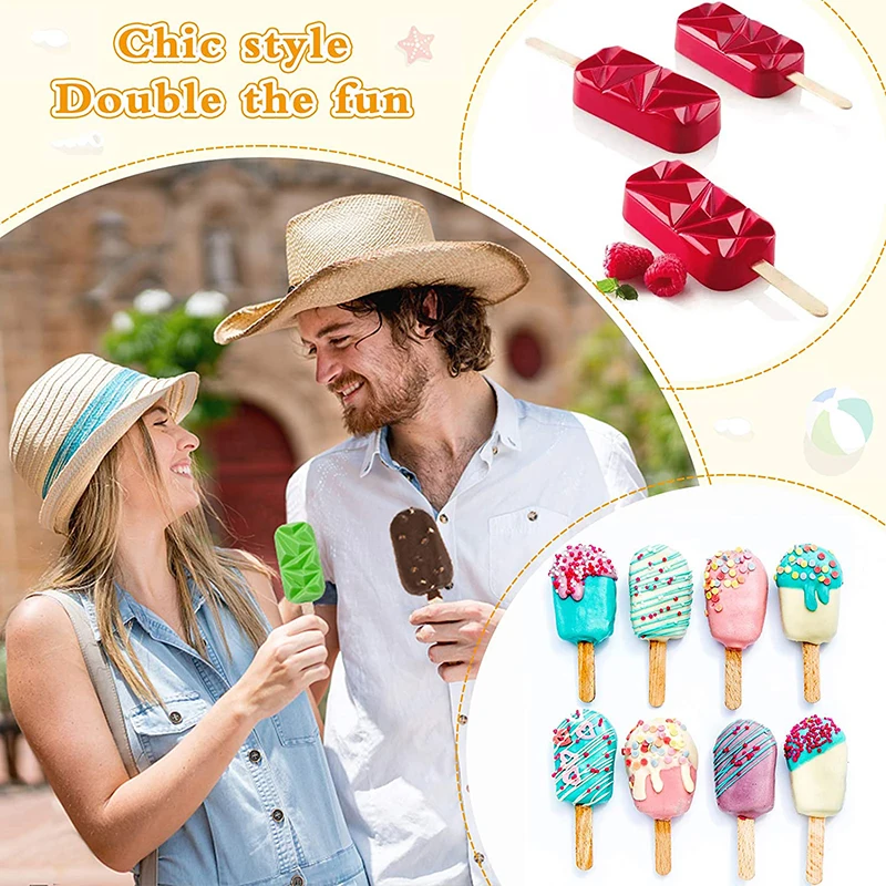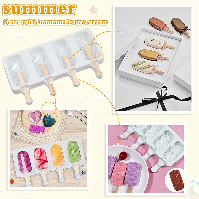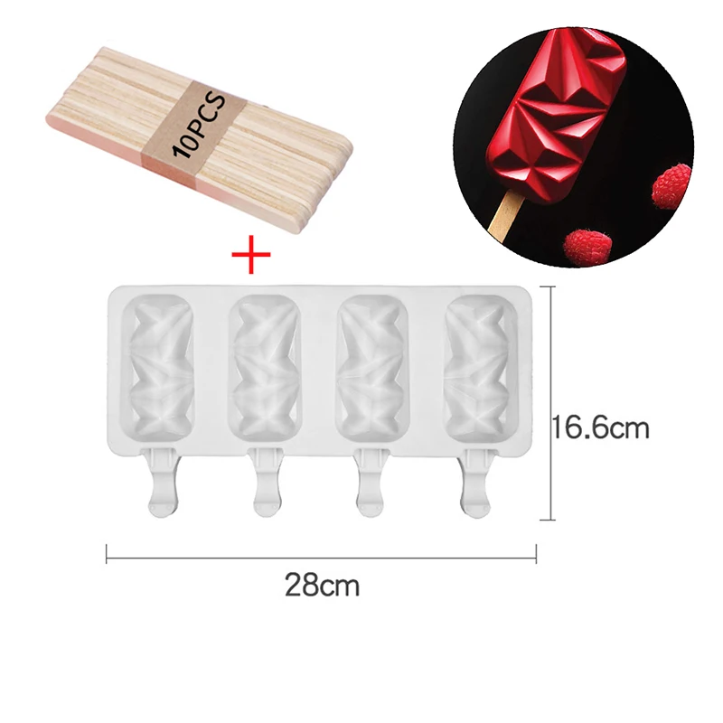 4. Многофункциональная силиконовая форма для Фруктового мороженого на палочке: эти формы для Фруктового мороженого разработаны с ромбовидной формой. Форма для Фруктового мороженого отличная силиконовая форма для изготовления желе, маффина, помадки, сиропа, шоколада, сырного пирога и т. Д. Вы можете DIY много вкусных мороженых, чтобы насладиться радостью ручной работы с вашей семьей.