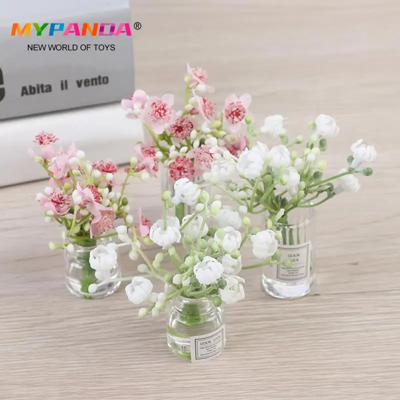 Набор миниатюрных розовых цветочных ваз из жасмина в масштабе 1:12 для кукольного домика, аксессуары для украшения, мебель для домашнего декора, имитация горшечных растений