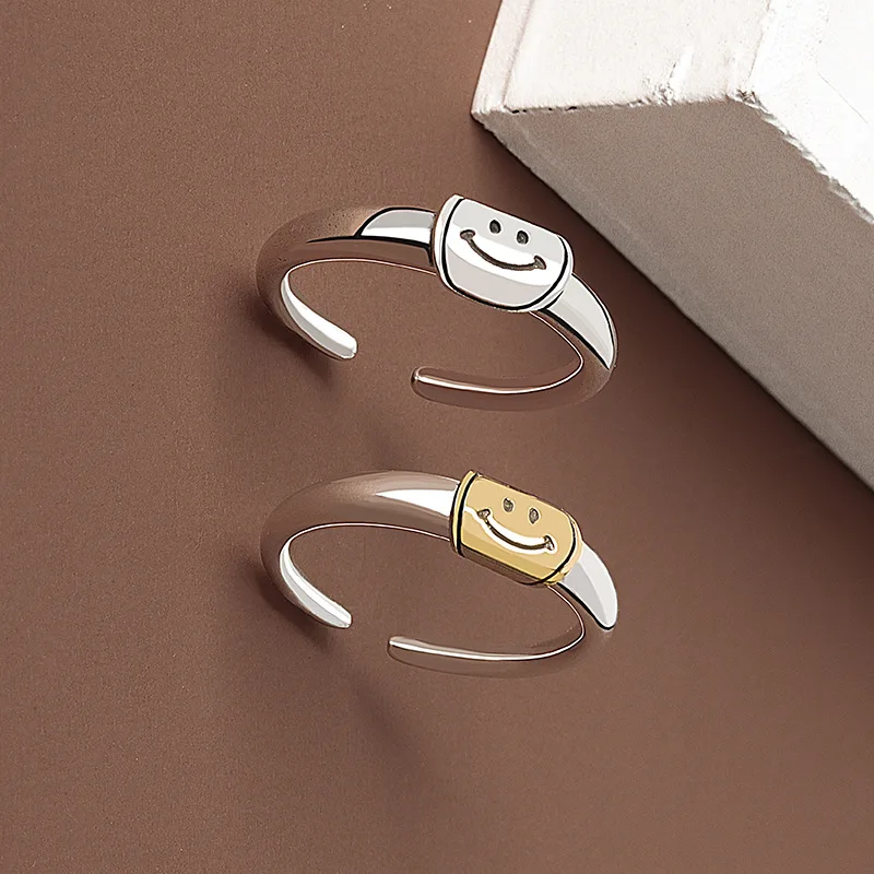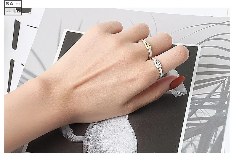 QMCOCO серебряный цвет креативные панк Простые Кольца для женщин улыбка лицо хип-хоп ювелирные изделия подарки модные аксессуары Подарки