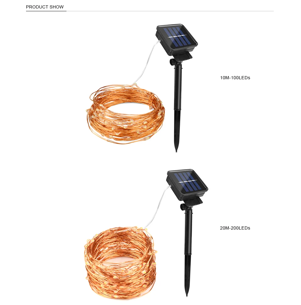 Солнечная перезаряжаемая Светодиодная лента Luz, медный провод светодиодный Светодиодная лента, сказосветильник свет, уличная гирлянда, солнечная энергия, лампа, Рождество для сада