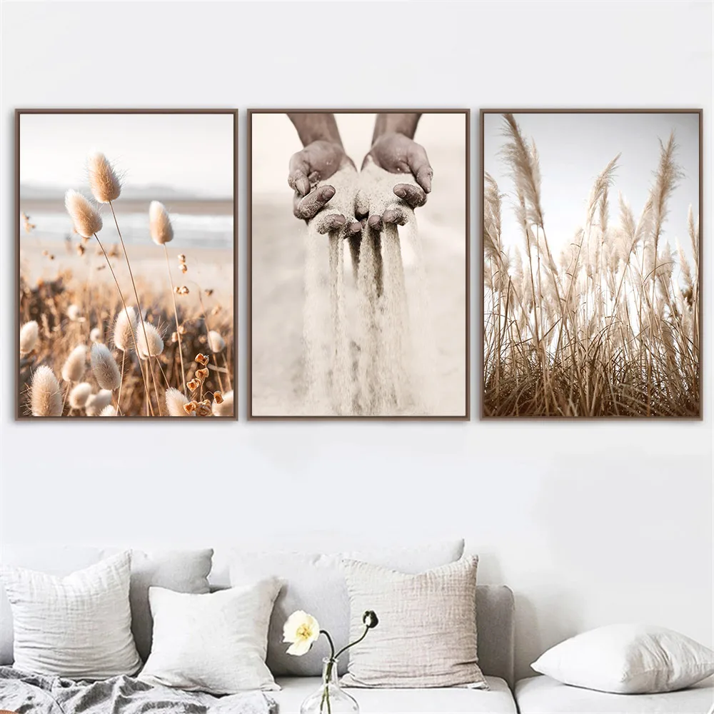 Спокойный Пляжный Пейзаж Wall Art плакат Рид песка рук в виде ракуш...