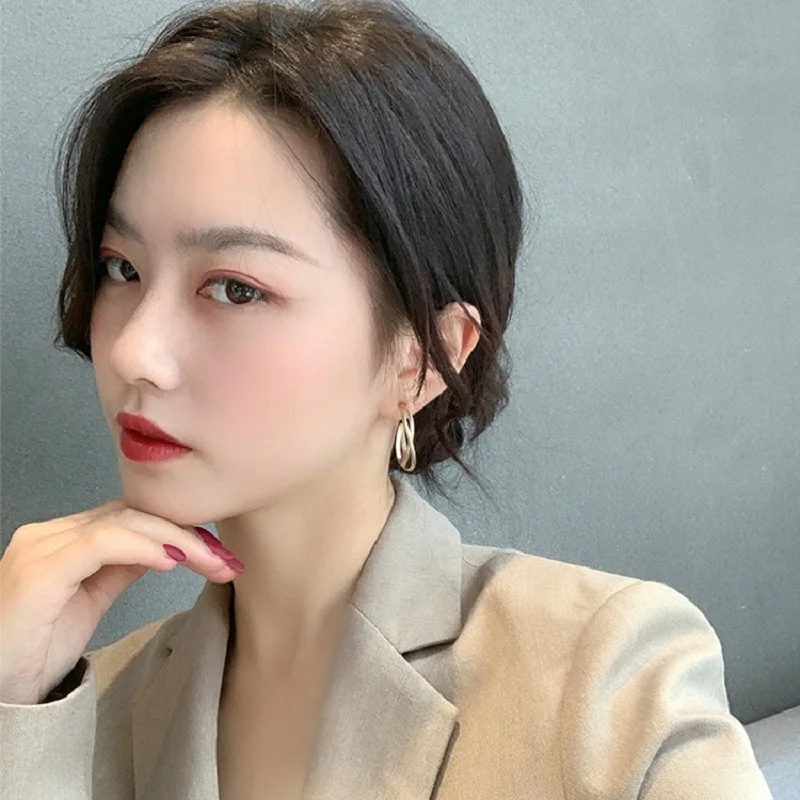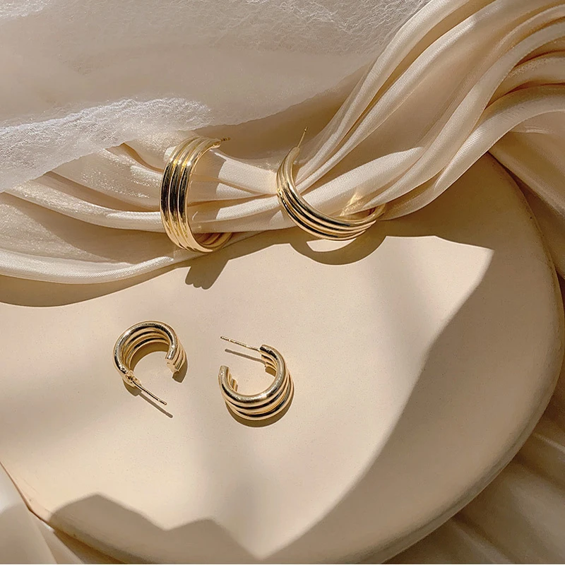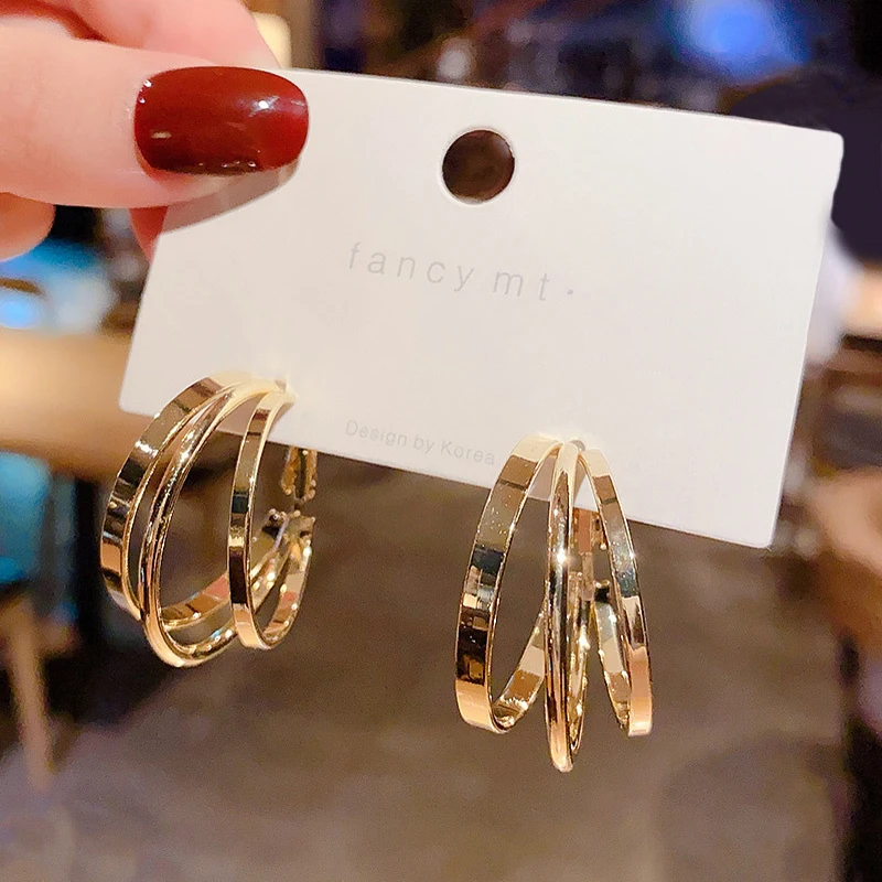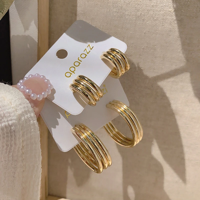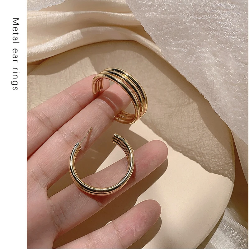 Маленький дизайн чувство трехслойные металлические серьги типа C же...