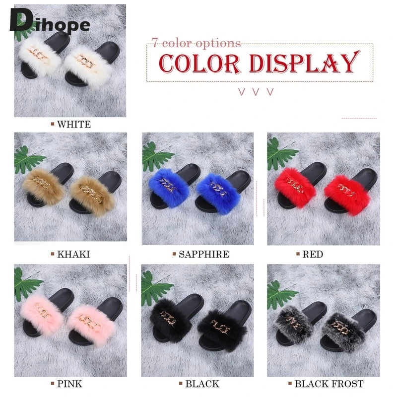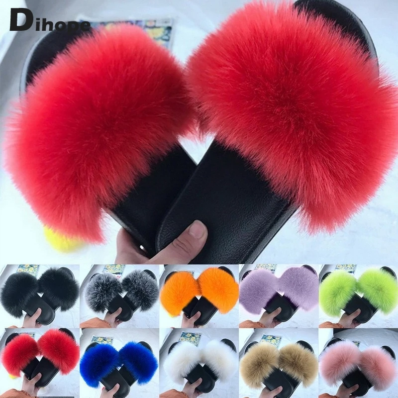 Шлепанцы Dihope женские для дома, сланцы из натурального меха лисы, повседневные меховые сандалии, пушистая плюшевая обувь, летние Тапочки