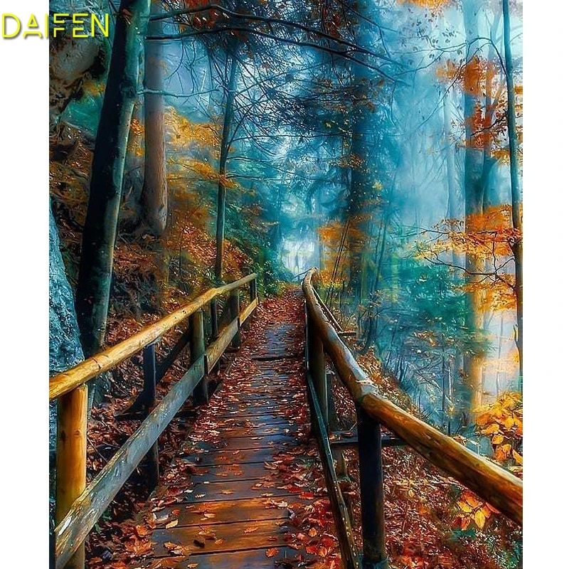 Полноформатная Алмазная вышивка, кленовый лес, DIY 3D Алмазная живопись, вышивка крестиком, дерево, полная круглая Алмазная мозаика, деревянная дорожка, пейзаж