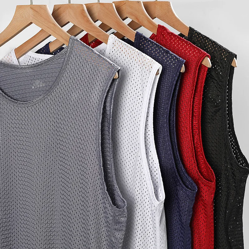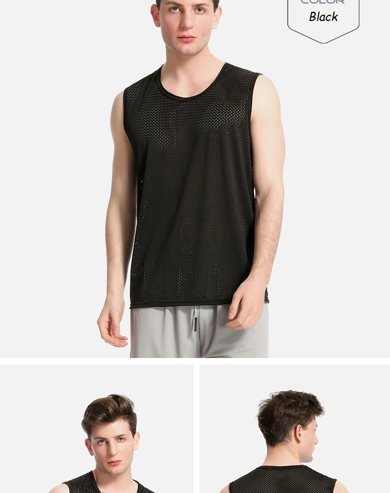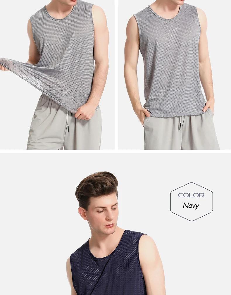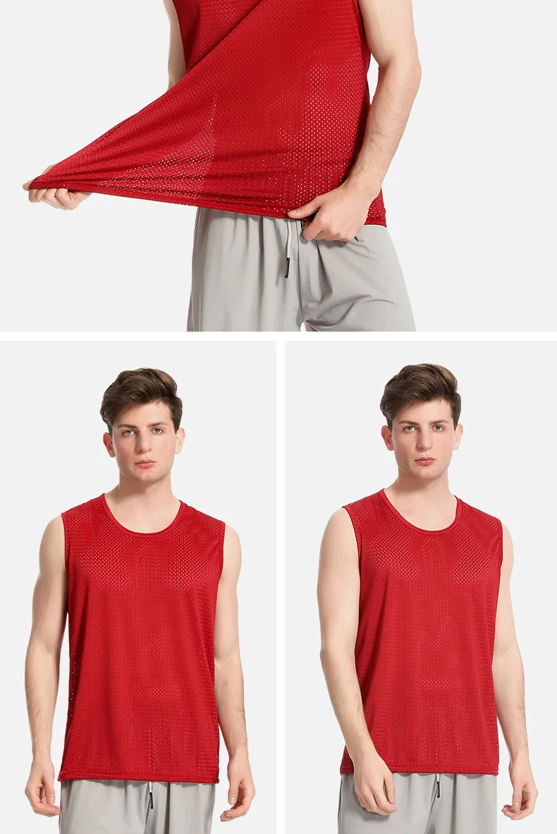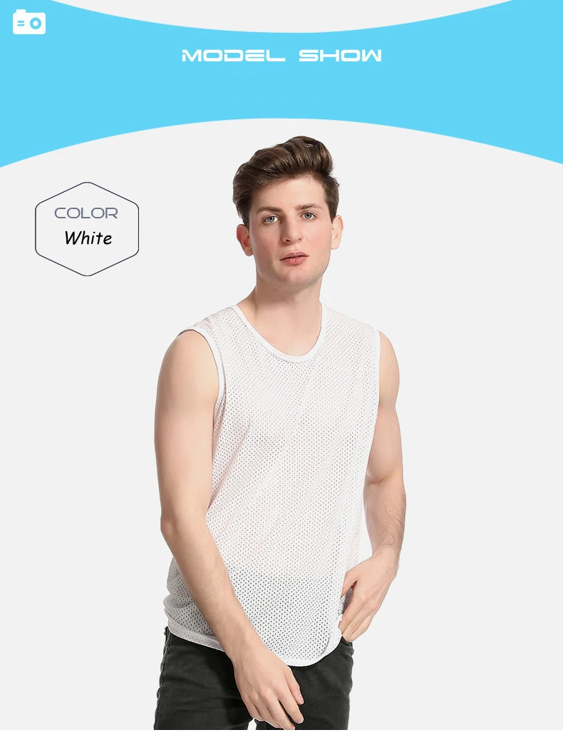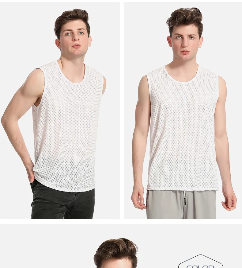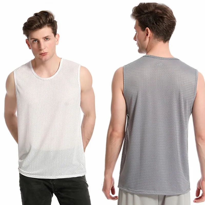 Мужской летний спортивный жилет для фитнеса с широкими плечами, дышащий сетчатый топ из ледяного шелка, свободный однотонный жилет, размера плюс