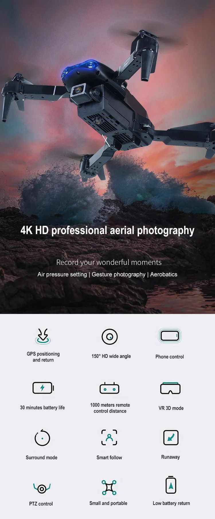 2021 Новый Дрон E99 Pro + RC геликоптер 4K Двухъядерный Intel HD Камера Распознавание лиц фотографии Wi-Fi складной Квадрокоптер детские игрушки для мальчиков подарок