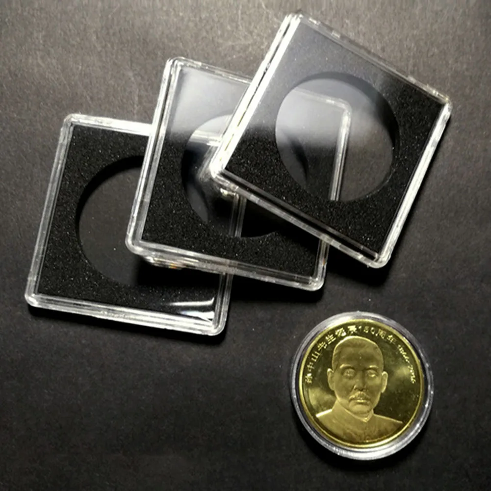 Прозрачный контейнер для хранения чехлов, 10 шт., Квадратный Контейнер для монет и капсул, 4 вида, безопасный, легко открывающийся замок