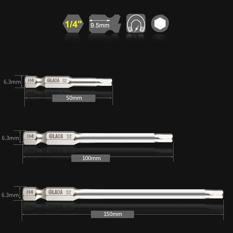 Шестигранная электрическая отвертка LAOA S2 из легированной стали с магнитной головкой 2 шт.