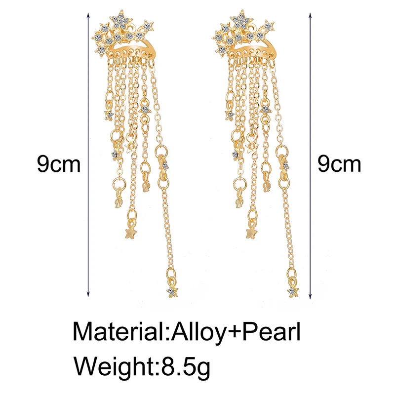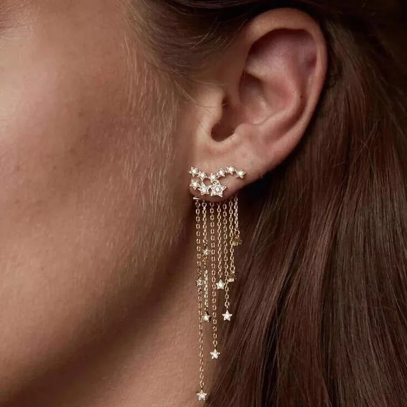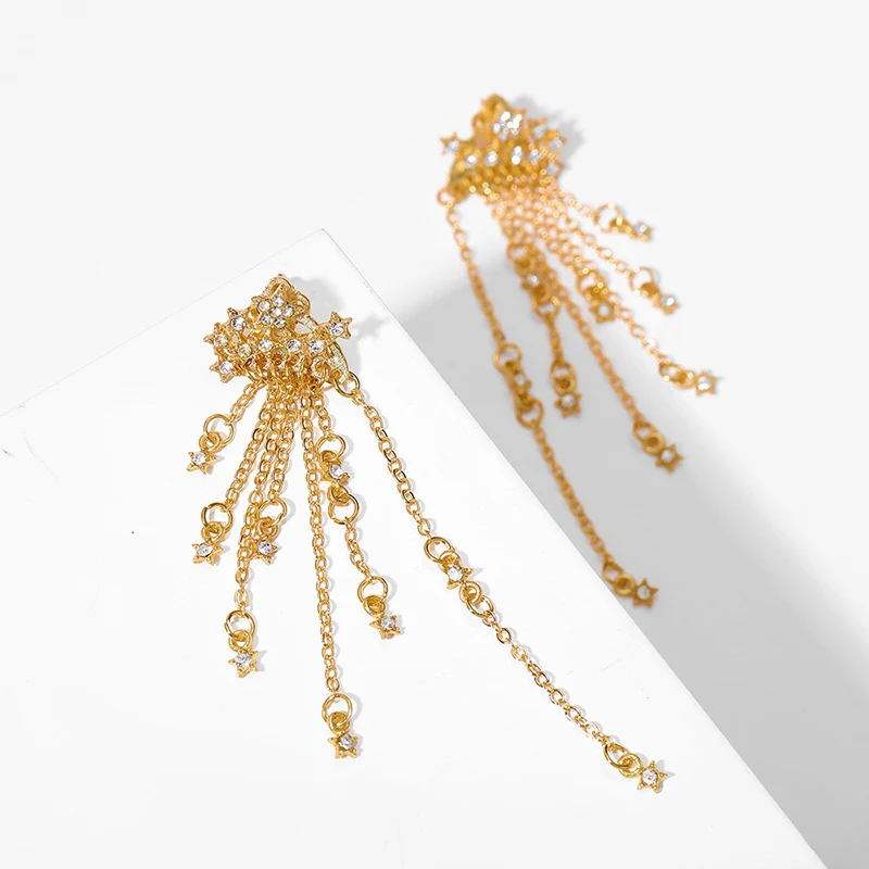 Модная женская Длинная кисточка, цепочка задняя Висячие серьги для женщин с вышивкой в виде звездочек; Очаровательная золото висячие серьги вечерние ювелирные изделия
