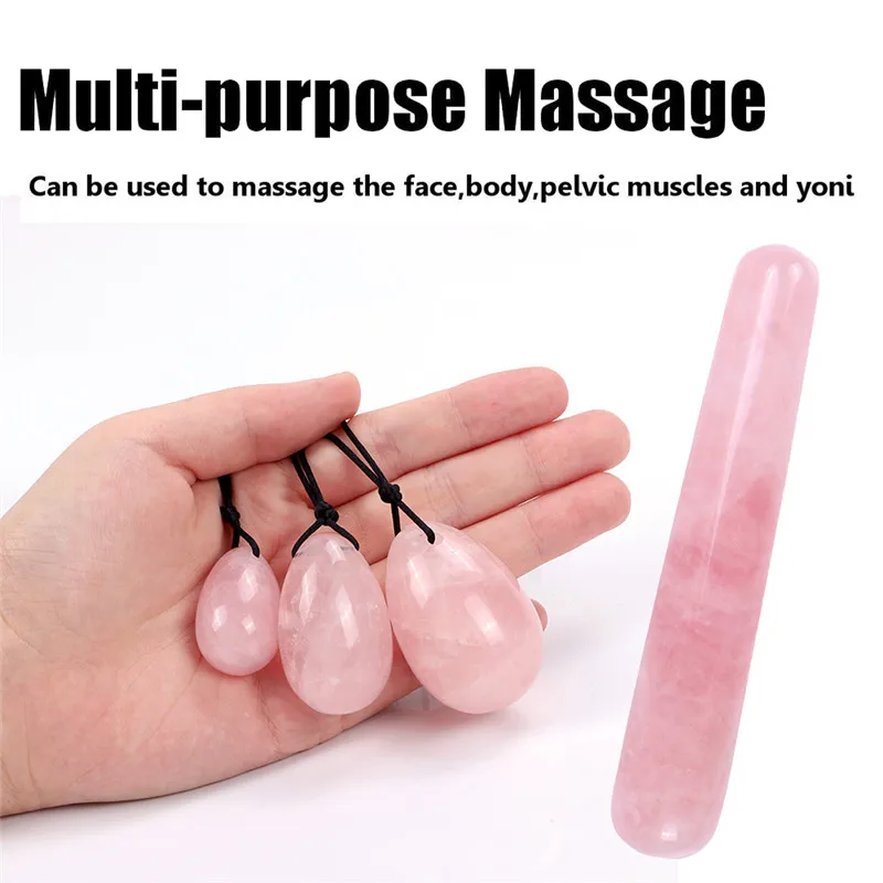 Натуральный розовый кварц Yoni набор яиц для массажа, Нефритовое яйцо, подтяжка мышц вагины, Кегель, хрустальные упражнения, йони-палочка, гигиенический массажный камень для женской гигиены