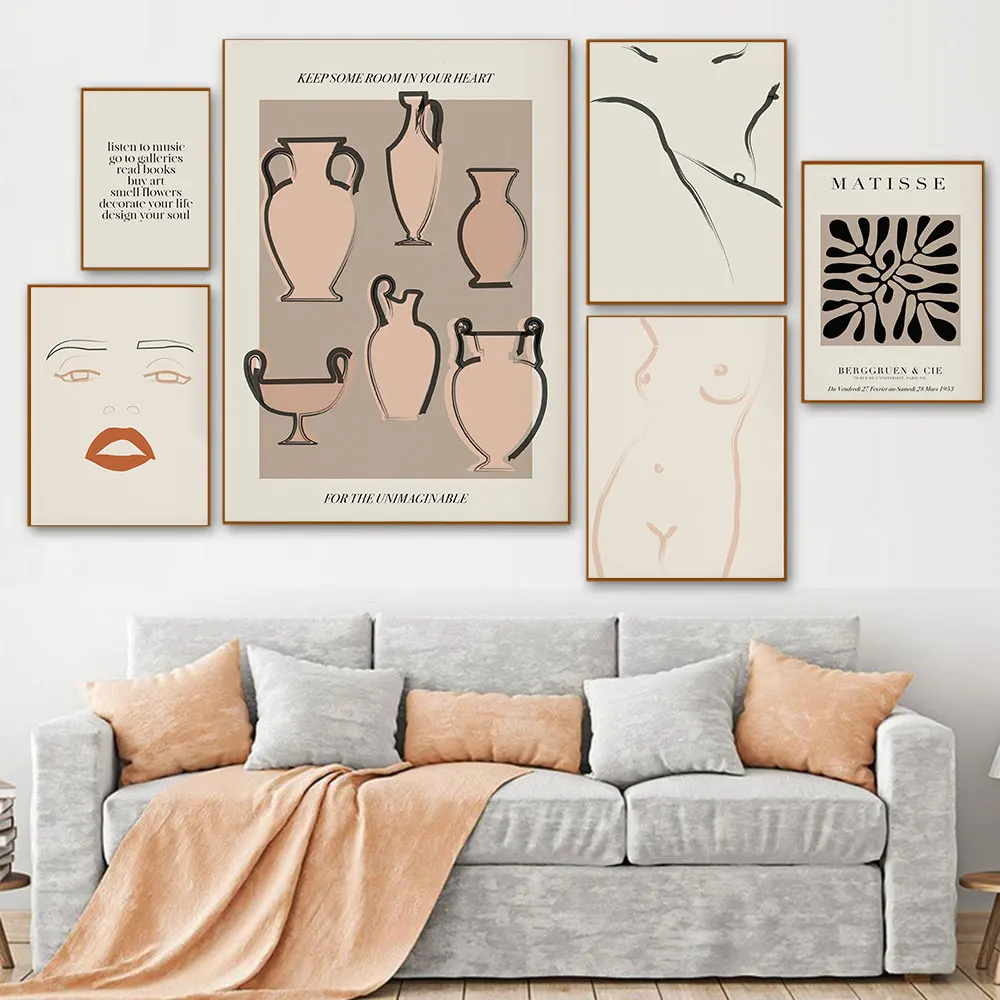 Плакат в стиле бохо Матисс, абстрактный, Пикассо, холст, минималистская линия, Современная Настенная картина для гостиной, домашний декор
